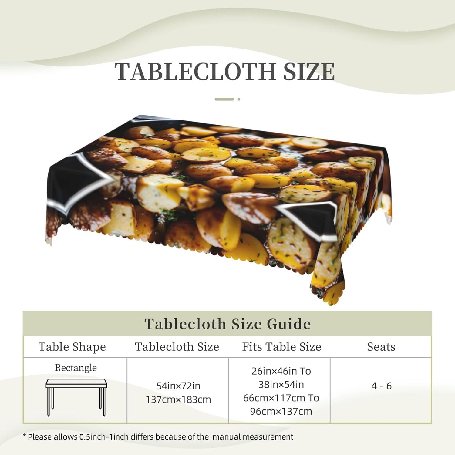 About this itemnFabric:This Garden Potatoes Print Tablecloth Is Made Of Polyester Fabric To Ensure The Protection Of Your Table And Furniture,Easy To Wipe Clean, Making It Ideal For Everyday Use Or Special Occasions.nElegant Design: This Garden Potatoes Print Tablecloth Provides A Warm Aura And Brings That Elegance Feel To Your,It Complements Any Decor. Whether You’Re Hosting An Intimate Dinner Party Or A Festive Family Gathering, Our Tablecloth Enhances The Aesthetic Appeal Of Your Table Setting.nSize: Rectangle Tablecloth :137 Cm X 183 Cm (54