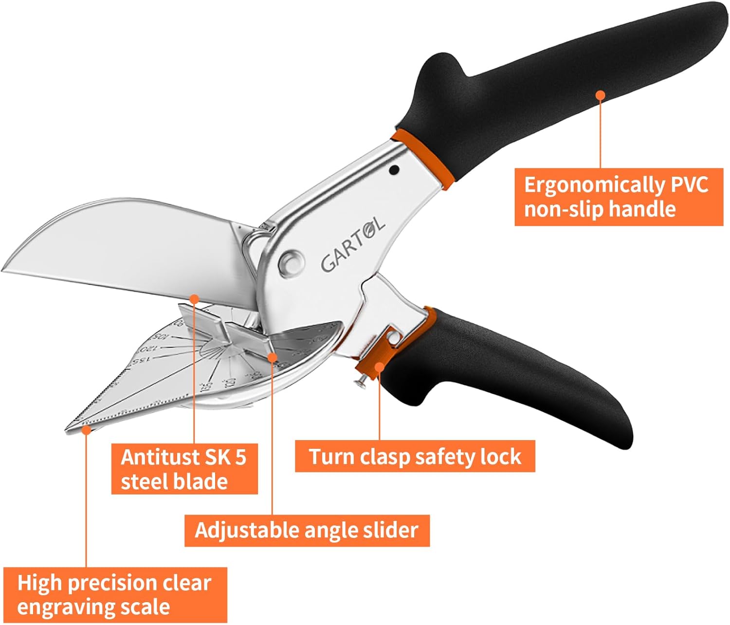 GARTOL Multifunctional Trunking/Miter Shears for Angular Cutting of Moulding and Trim, Adjustable at 45 To 135 Degree, Hand Tools for Cutting Soft Wood, Plastic, PVC, with Replacement blades