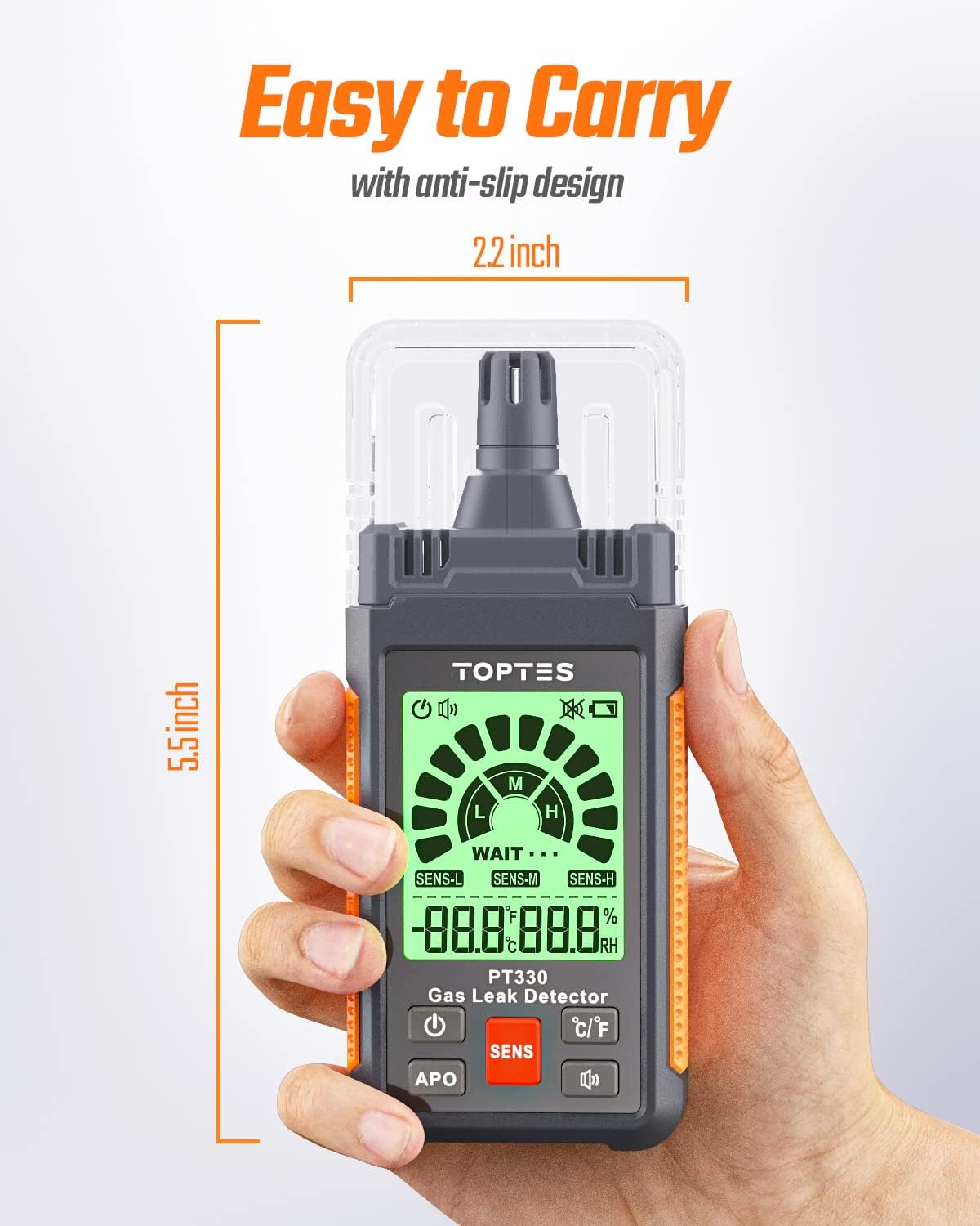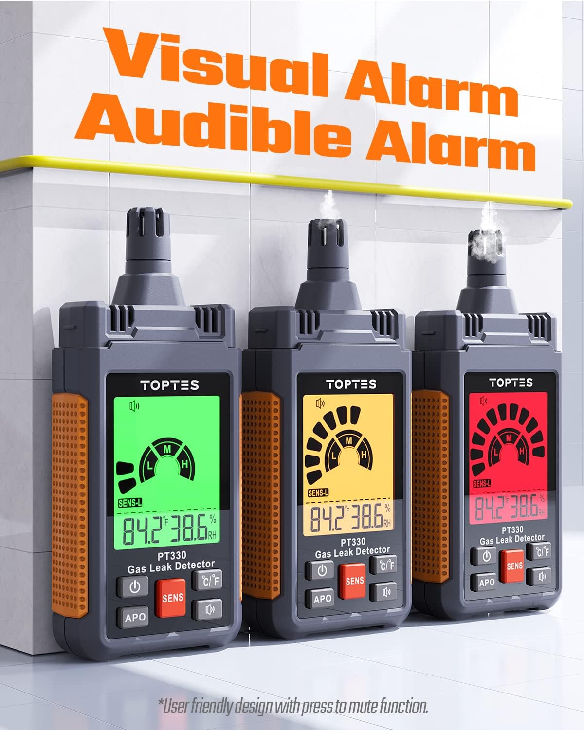 Gas Leak Detector, TopTes PT330 Natural Gas Detector with Audible & Visual Alarm to Locate Combustible Gas Leaks Like Natural Gas, Propane for Home and RV (Includes Battery x3) – Orange