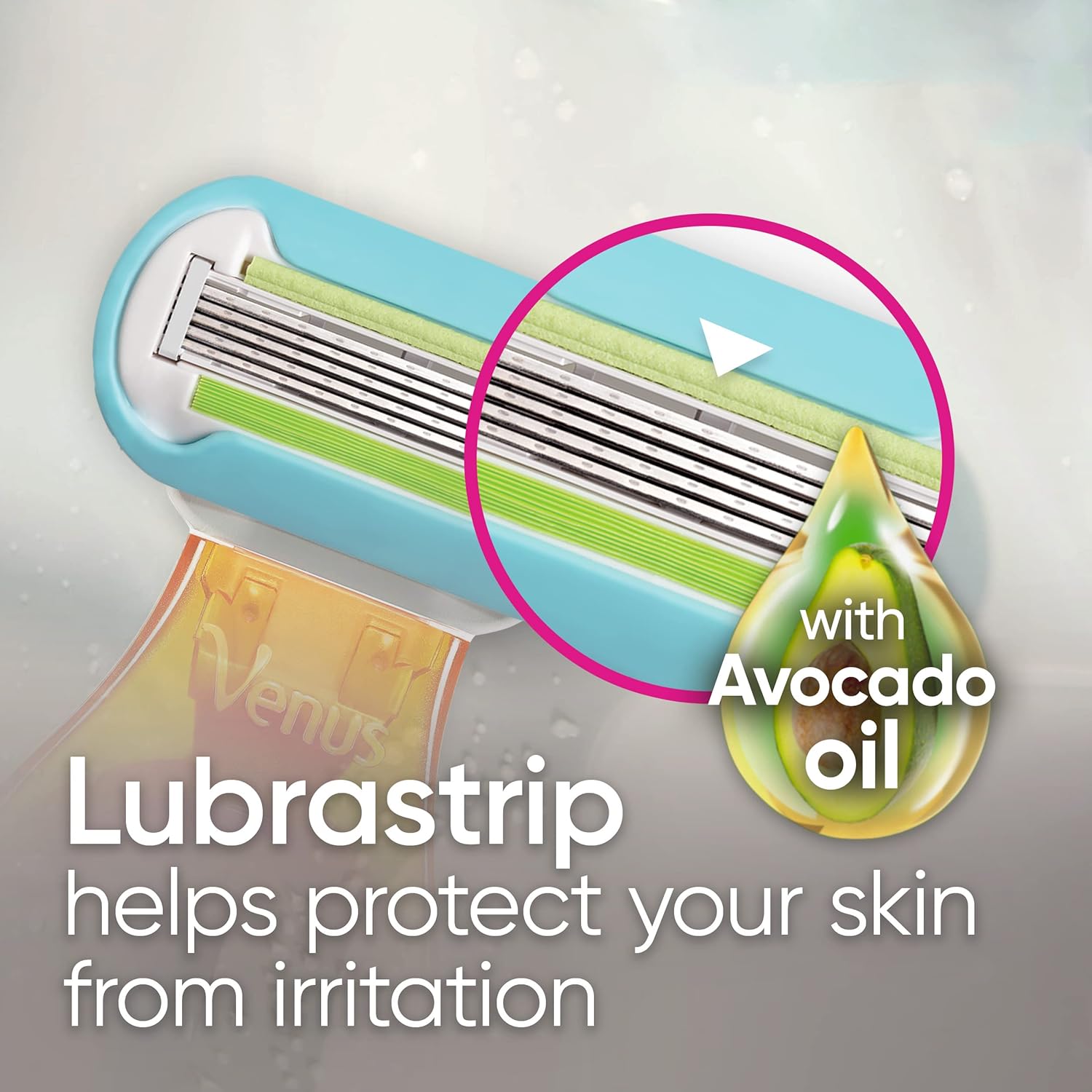 About this itemnCOMPACT & PORTABLE: With a mini handle and travel case for on-the-go use. Easily fits into your purse or travel bag. The mini handle will fit any Venus blade refill (except Simply Venus and Venus Pubic Hair Razor)n5 BLADES FOR A LASTING SMOOTH: 5 blades designed for an extra smooth shave that lasts and also resists rustn30 DAYS OF SMOOTH SHAVES: Each blade refill lasts up to 30 days of smooth shaves (based on twice/week shave)n10X MORE LUBRICATION: Long-lasting shave with 10x more lubrication (vs Venus Smooth)nPIVOTING HEAD DESIGN: These razor refills have a pivoting head that adjusts to your curves, including ankles and knees. No awkwardly angling your razor