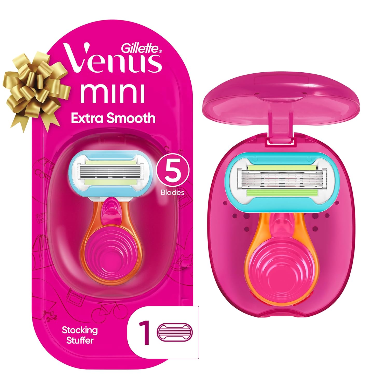 Gillette Venus Extra Smooth On The Go Women’s Razor Handle + 1 Blade Refill + 1 Travel Case, Holiday Gifts and Stocking Stuffers for Women