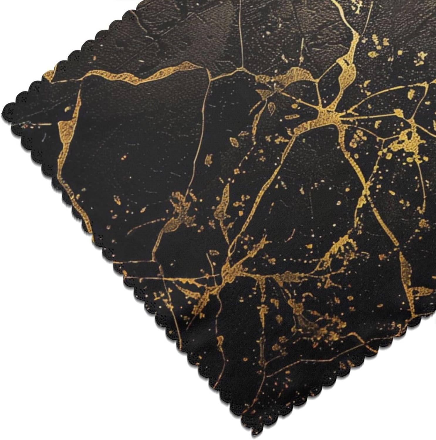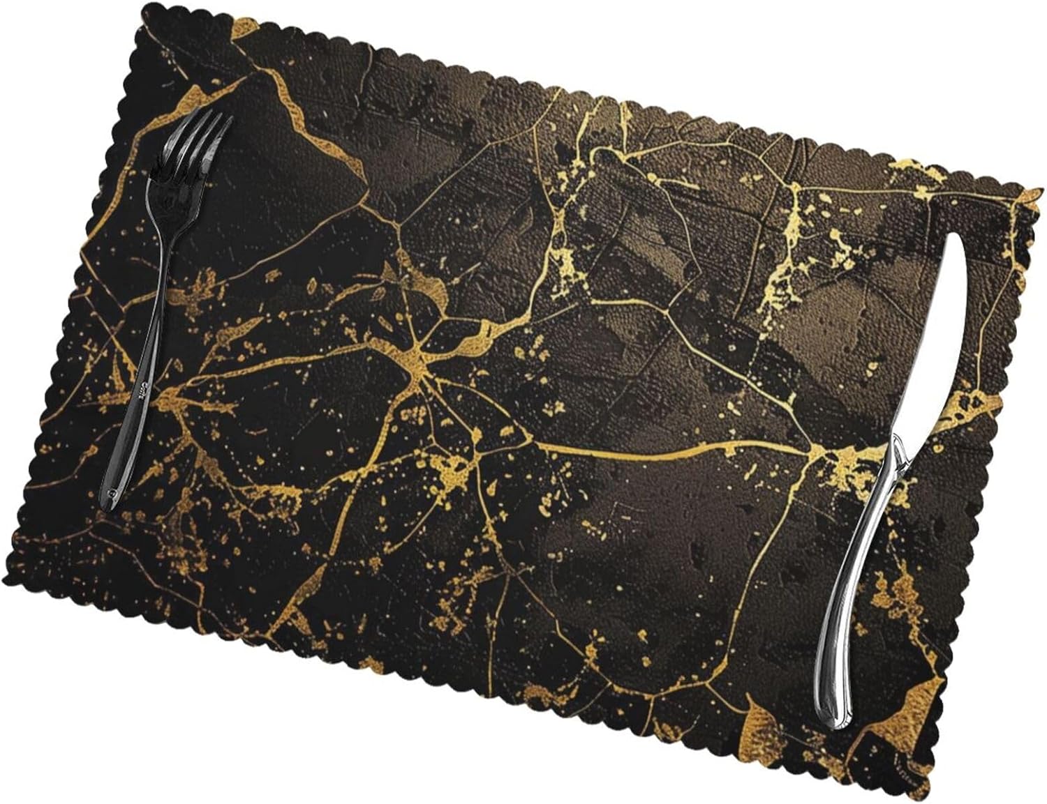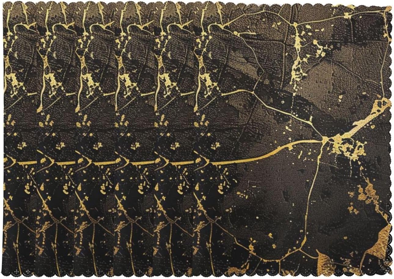 Gold Black Wallpaper Printed Heat Resistant Placemats 6 PCS – Non-Slip Washable Kitchen Table Mats for Dining, Parties & More (18x12in, Polyeste)