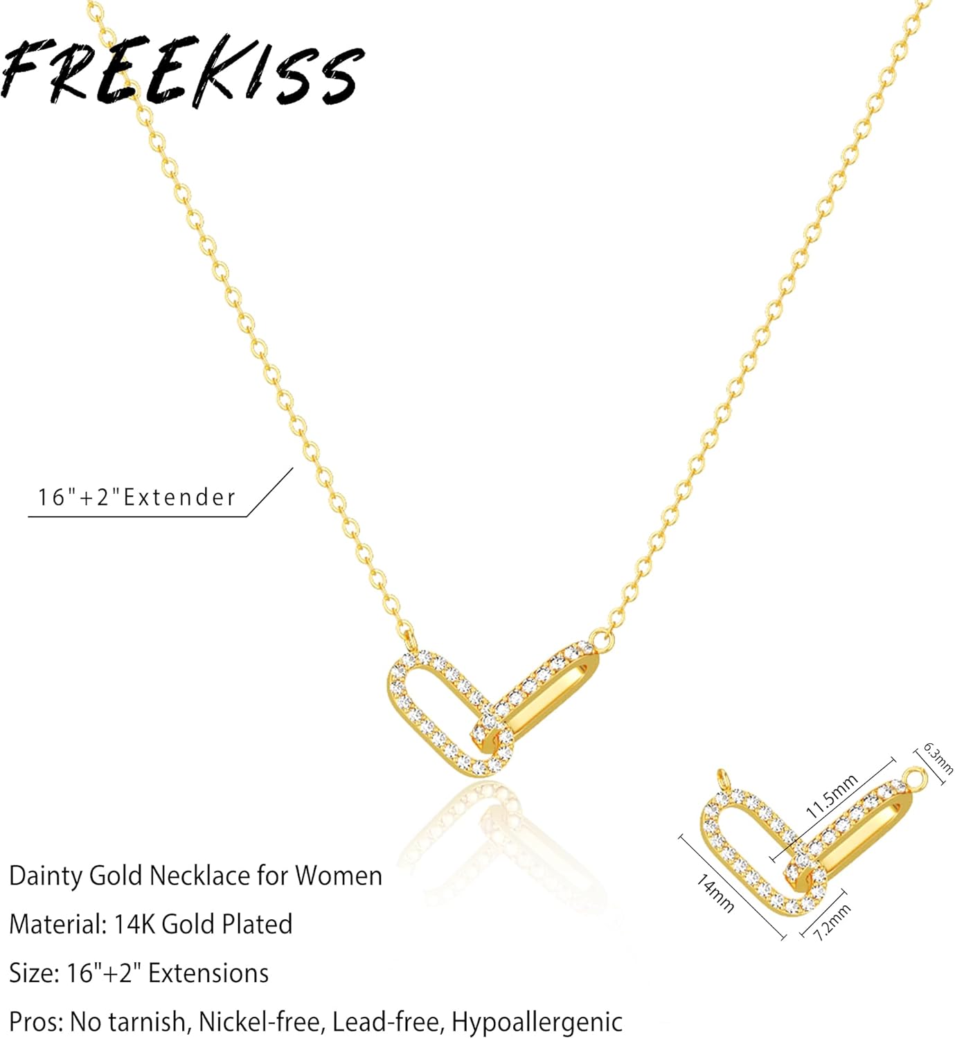 Gold Pendant Necklace for Women, Dainty Diamond Necklaces for Women Simple 14K Gold Plated Paperclip Choker Necklaces Cute Minimalist Open Oval Necklaces Gold Jewelry for Women Gifts
