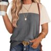 WIHOLL Womens Fashion 2025 Color Block Shirts Short Sleeve Crewneck Knitted Spring Summer Tops Casual Trendy