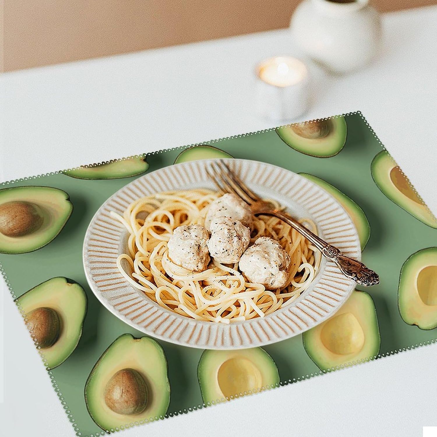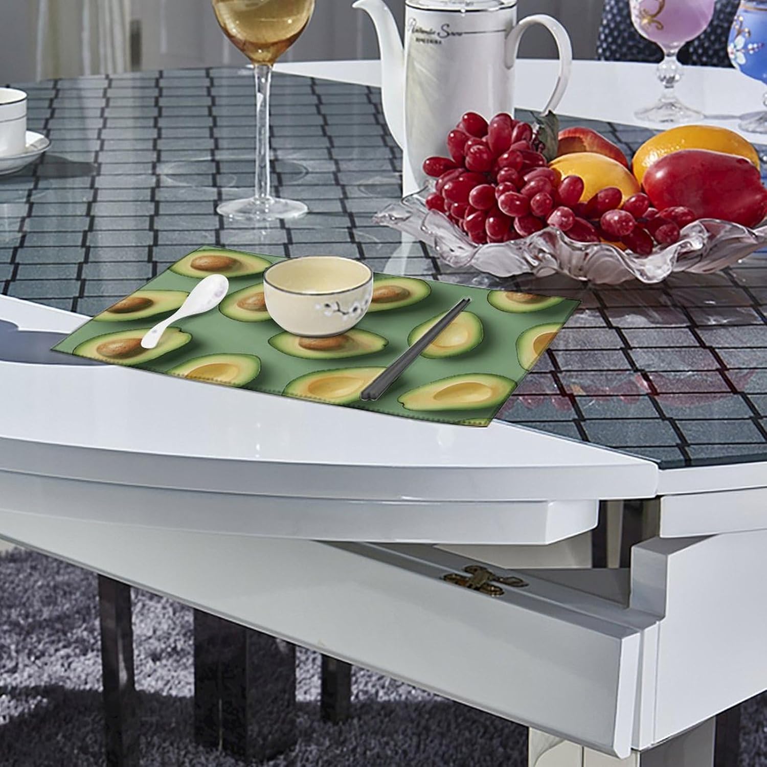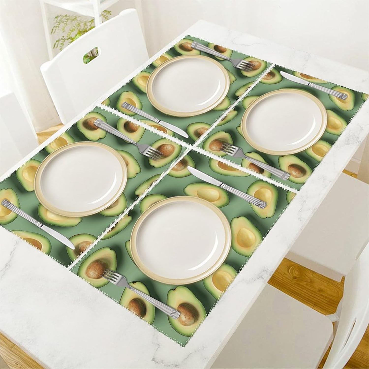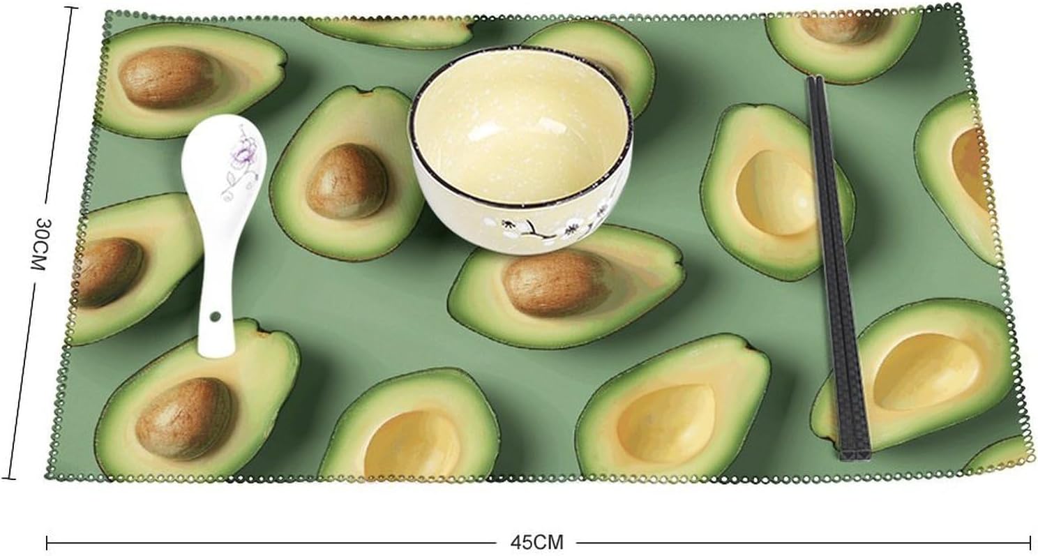 About this itemnPerfect Protection: Crafted from high quality canvas fabric, the Green Pattern table protector is thick, protecting your tables and furniture from hot dishes, stains and scratches.They provide a non-slip surface, resist fading, and are easy to clean, elevating your dining experience.nMeasurements: Each package includes 4 pieces of placemats measuring 17.7 x 11.8Inch.If there is any problem,please contact us, our customer support team is always ready to help you. It is suitable for all hot drinks and plates, protect your dining table from scalding.nGreat Gift Idea: The stylish placemats set makes s great housewarming, wedding or birthday gift. They are quality assured, practical, stylish, and add a touch of elegance to any home. Add style to your dining setting while ensuring table protection.nVersatile Uses:Our placemats can be used as nice accessories to match your different decor purposes such as table mats, pot holders, coasters, laptop pads, etc. The rustic and neutral design fits any occasions and helps to create a warm and inviting atmopshere.nEasy to Care: Hand wash with warm soapy water or wipe dry directly; do not wash in a washing machine or use steel balls or something very difficult to clean.They provide a non-slip surface, resist fading, and are easy to clean, elevating your dining experience.