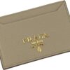 Prada Vitello Grain Leather Argilla Grey Card Holder Gold Logo 1MC208