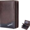 PORRASSO Men Wallets Card Holder Wallet Bifold PU Leather Wallet with Zipper Coin Pocket Credit Card Holder Coffee