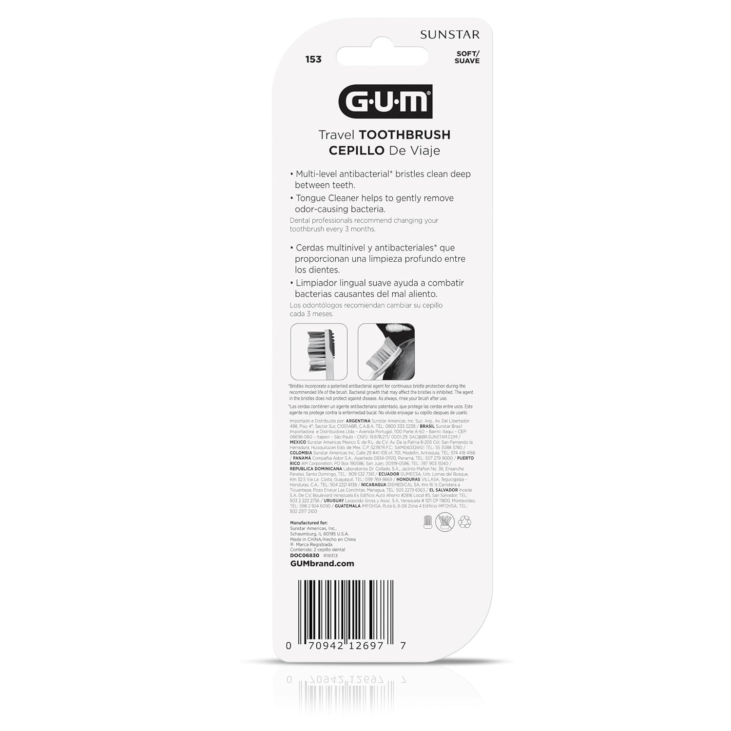 GUM TRAVEL TOOTHBRUSH: This portable toothbrush features a tri-fold design that allows the bristles to fold into the handle for compact and hygienic storage in your purse, backpack, suitcase, or glove box.nPERFECT FOR ON-THE-GO: The GUM folding toothbrush makes it easy to carry a clean, plaque-free smile with you wherever you go. Simply fold our pocket toothbrush up and throw it in your bag for airplane travel, road trips, backpacking and camping trips.nHYGIENIC-TREATED BRISTLES: The bristles on our foldable toothbrush are treated with a hygienic solution that keeps your toothbrush fresh and clean between uses.nCOMPACT SOFT: GUM travel toothbrushes come with soft bristles and a compact size head. Each of our soft toothbrushes features a built-in tongue scraper for a total mouth clean that promotes fresher breath.nHEALTHY STARTS HERE: Research continues to show the connection between oral health and overall health. The GUM brand is committed to providing innovative oral care products that make between-teeth cleaning accessible for everyone.