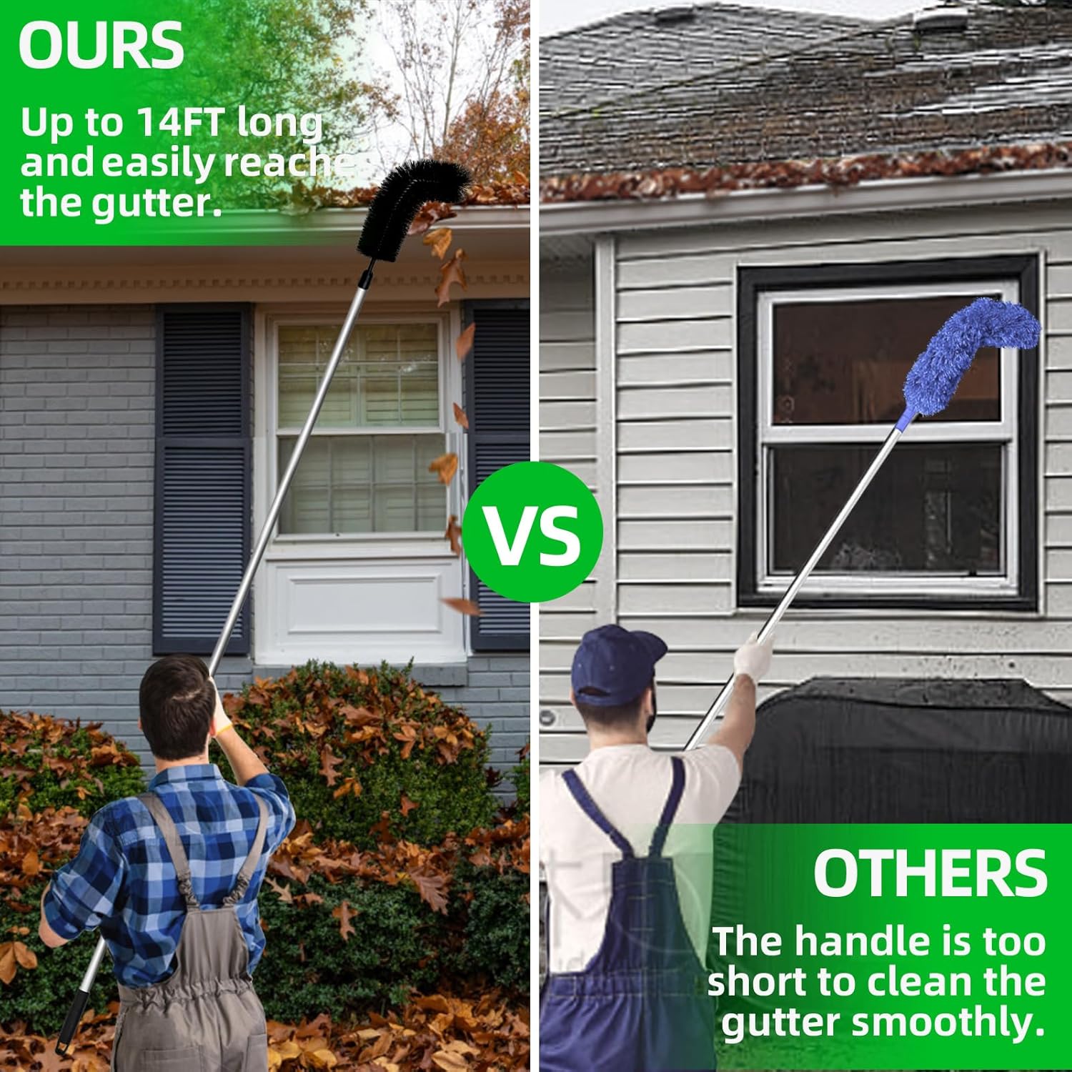 Gutter Cleaning Tools 14 ft Adjustable Gutter Cleaning Brush from The Ground Multi-Functional Extended Handle Brush Gutter Cleaner, Easily Clear roof Leaves and Debris.(with 11 Tubes & 2 Brushes)