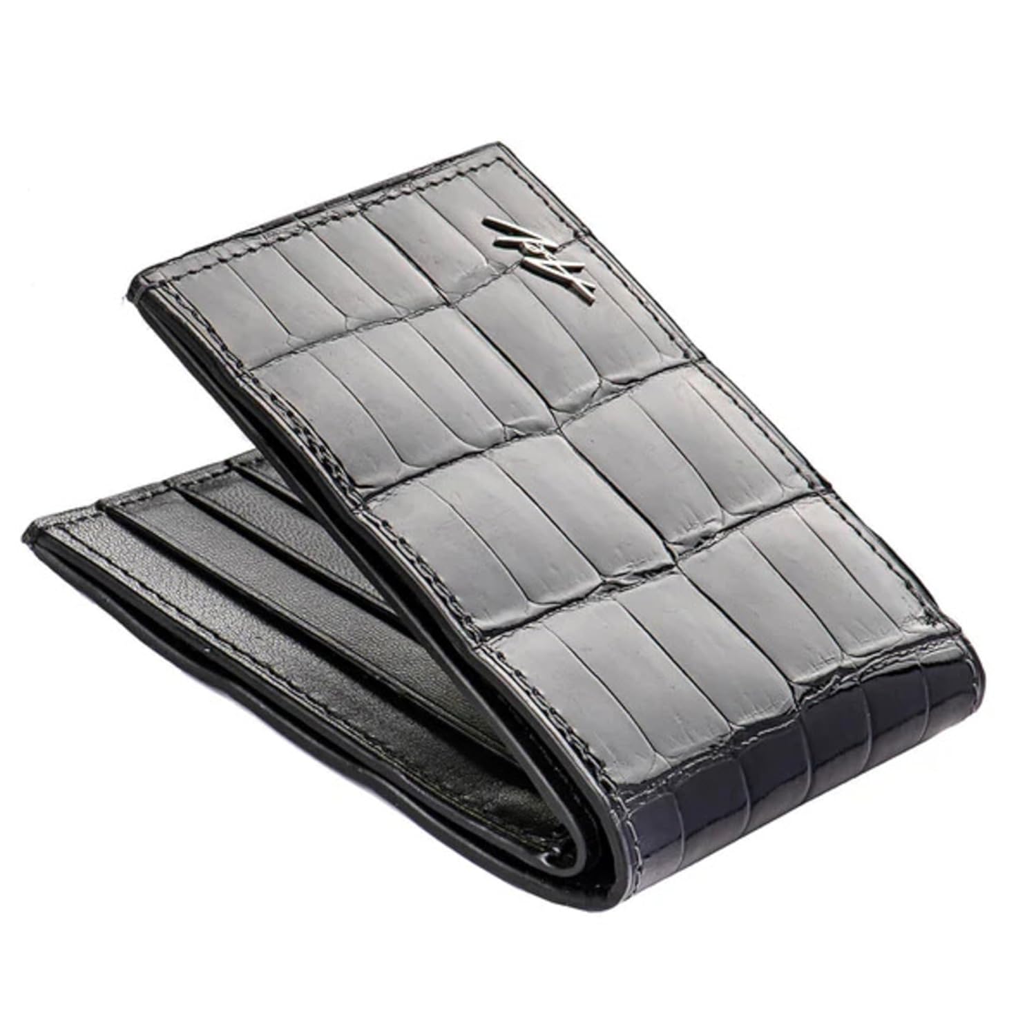 Handcrafted from 100% genuine alligator leather for lasting durabilitynSlim minimalist design with 6 card slots, 2 side pockets, and a central pocket for cashnEco-friendly edge painting and hypoallergenic adhesive for sustainabilitynHand-polished steel 316L logo for added elegance and distinctionnComes in premium gift packaging, perfect for special occasions