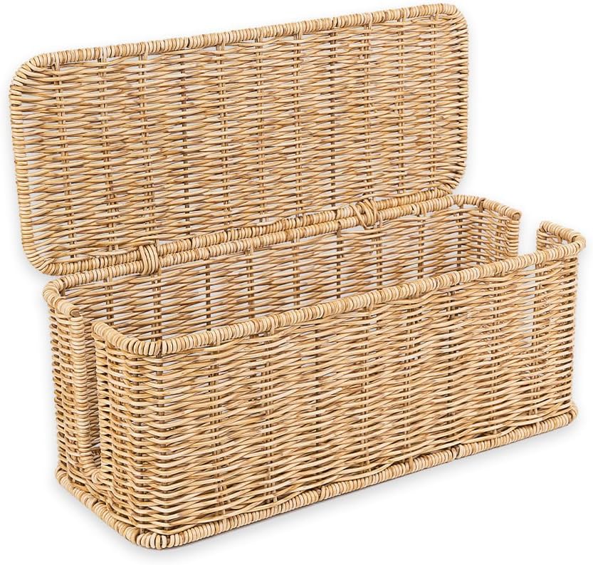 About this itemnElegant & Safe Handwoven Synthetic Rattan: Our Cantalop Cord storage organizer with attached lid boasts a handmade polypropylene rattan like plastic, adding a touch of rustic elegance to any room. This cable organizer is carefully designed to hide wires and improve your space with a charming touch.nOrganize and Decorate with Versatility: Transform your workspace with our large capacity Cantalop Cable organizer box, a multifunctional solution that not only tidies cables but also serves as a shelf for small plants and decorative trinkets. Streamline organization while enhancing visual appeal.nSimplify Access, Conceal Clutter: Say goodbye to cable chaos with our thoughtfully designed Cord box organizer with 2 entry/exit points. Conceal power strips, USB hubs, and more within its compact 13 x 5.1 x 5.1-inch frame. Thoughtful cutouts ensure easy access without compromising on a clutter-free workspace in home or office.nCool and Durable for Lasting Performance: Keep cool and stay sturdy with our Cantalop Cable storage box. Engineered with a hollow heat sink, it efficiently dissipates heat for long-lasting durability, ensuring your cables stay organized and your workspace stays functional.nSecure and Pet-Friendly Cable Management: Prioritize safety with our cord organizer storage, crafted to keep your little ones and furry friends safe from electrical hazards. Our baby- and pet-proof design ensures a secure home environment, offering peace of mind for all.n See more product details