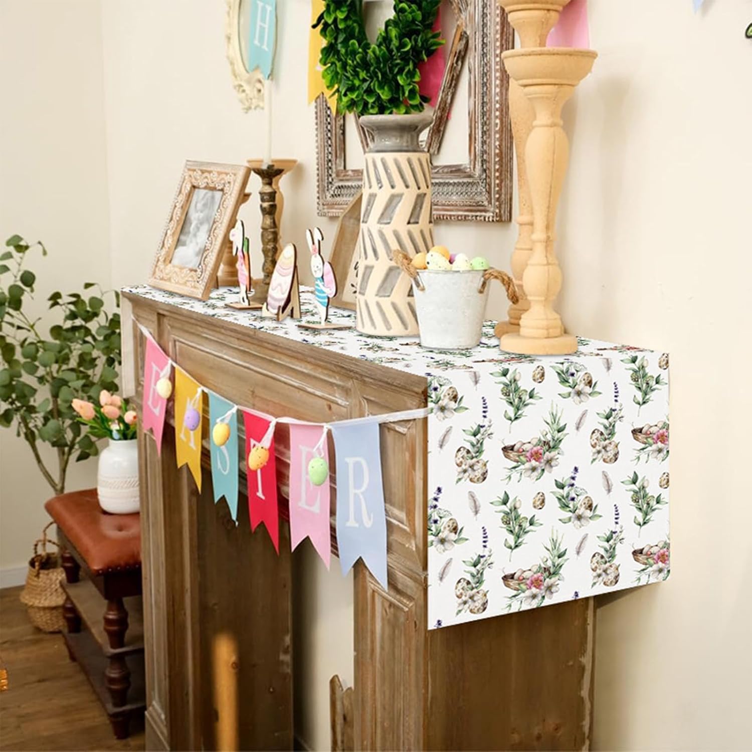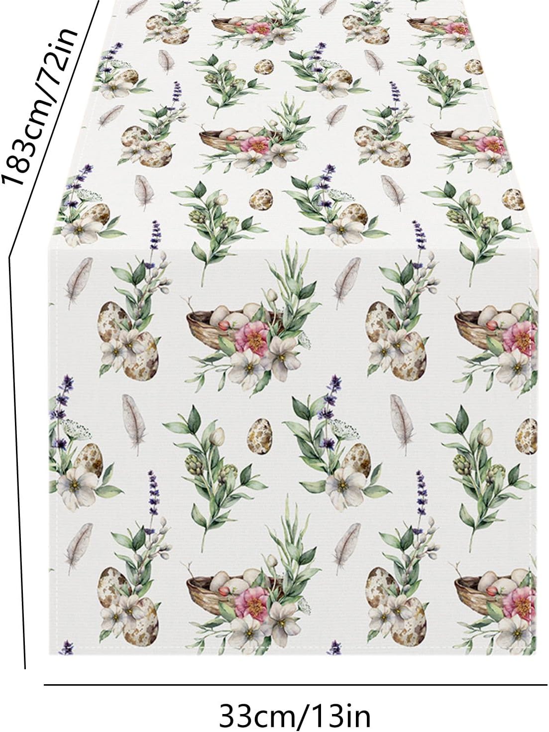 About this itemnLinennHIGH QUALITY RUGGED TABLE FLAG – This table flag is made from high quality burlap for durability. Its design features a delightful array of colorful eggs, ensuring that it stands out with sophistication and festivity as the centerpiece of your Easter decor.nPERFECT SIZE FOR EASTER DINING TABLES – This table flag measures 72 x 13 inches and is perfect for most dining tables. It provides ample coverage for your dining space, making it a must-have for your Easter decorations and can bring a festive feel to your home setting.nEASY TO DECORATE – Decorating with this table flag is simple and straightforward. Designed to lay flat on any surface, it instantly adds Easter-themed beauty to your space with minimal effort.nEASTER THEME – The table flag is designed for Easter celebrations and features a colorful Easter egg motif. It revitalizes the holiday spirit and adds cheer to your seasonal decor.nSUITABLE FOR EVERY OCCASION – In addition to Easter, this table flag is perfect for a variety of spring events. Whether you are preparing for a family gathering or a casual spring dinner, it will add a festive Easter atmosphere to your meal.