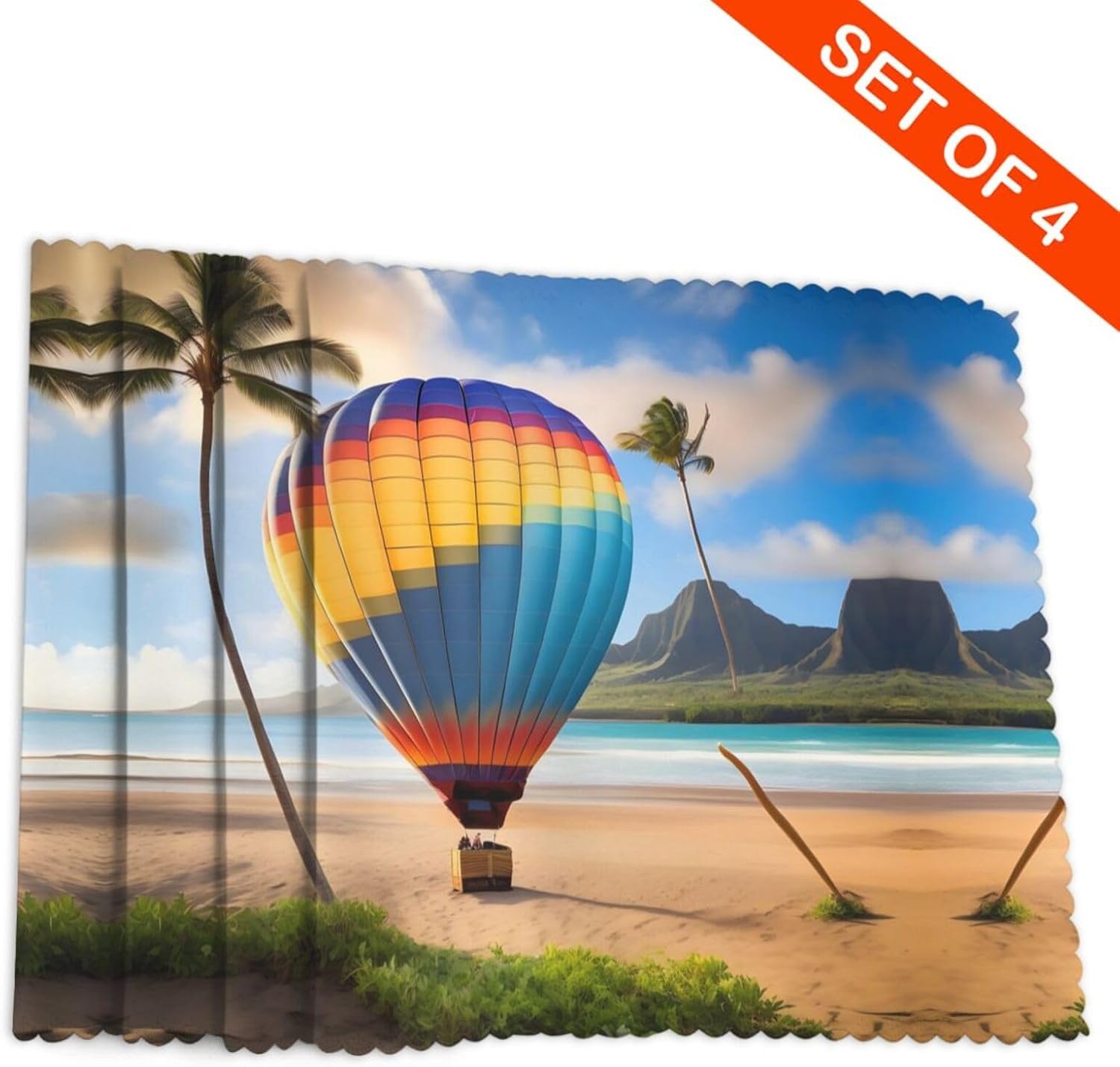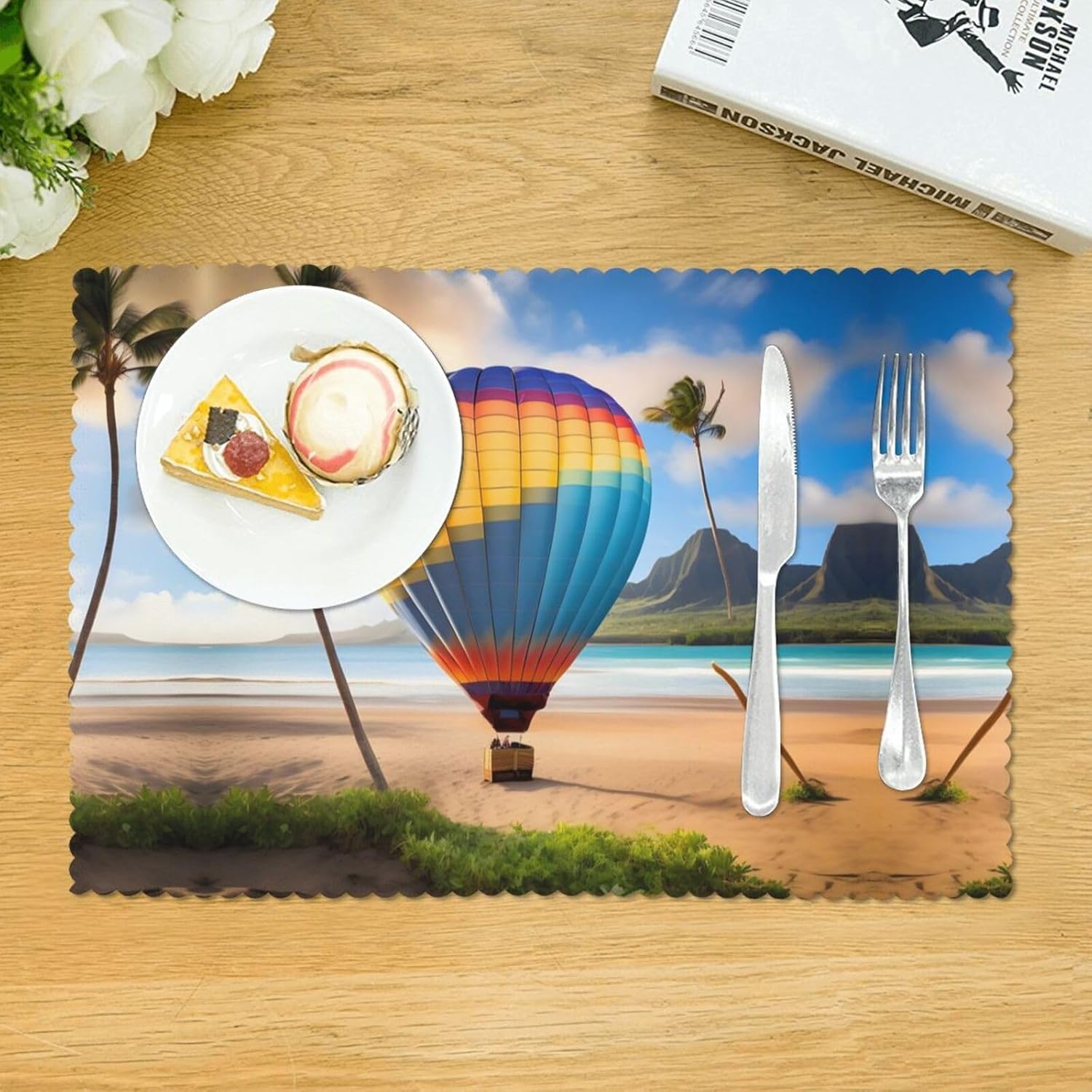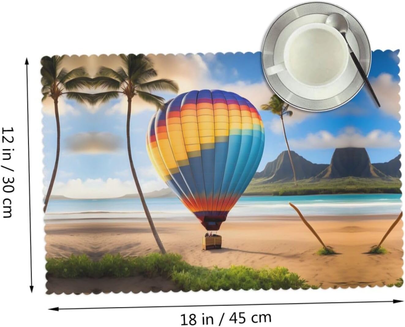 Hawaii Hot Air Balloon Placemats Set of 4, (12 * 18 inches), Easy to Clean Insulated Placemats for Dining Room, Patio Table, Kitchen