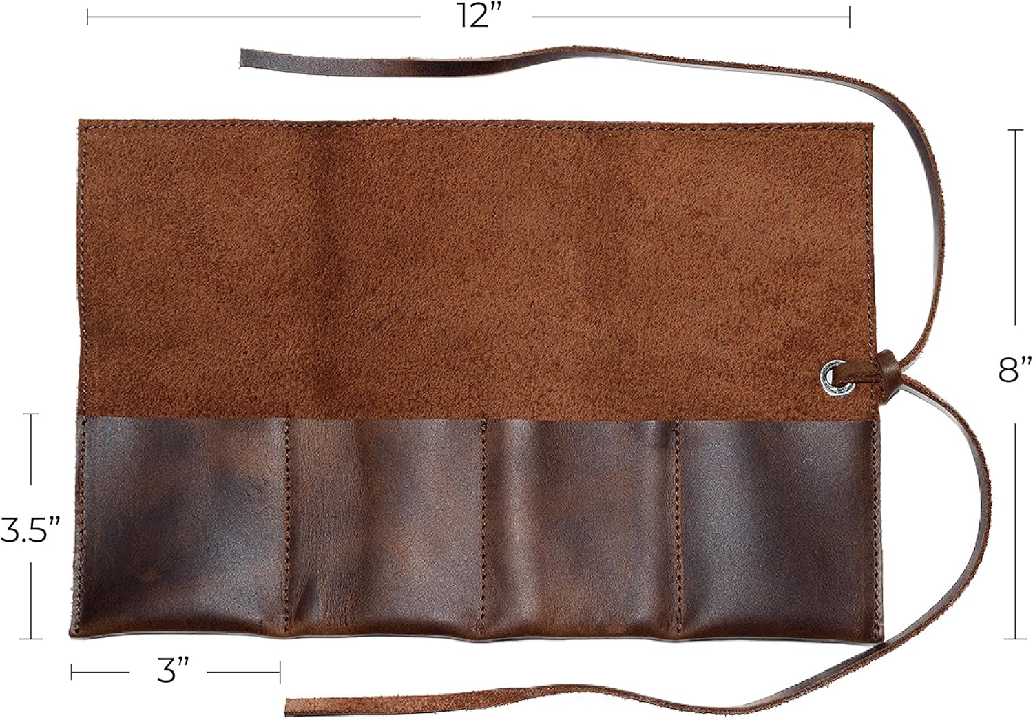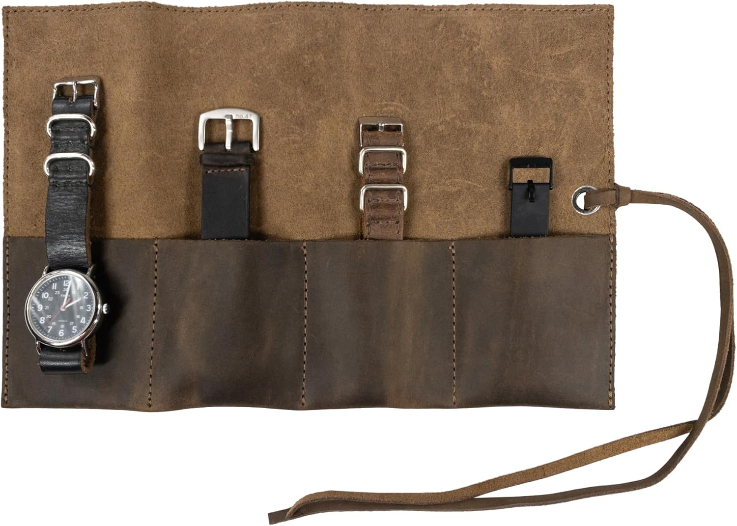 Hide & Drink, Watch Roll Organizer with 4 Slots, Storage Box, Jewelry Roll, Easy Carry On Watchlover Storage, Full Grain Leather, Handmade Travel Case, Bourbon Brown