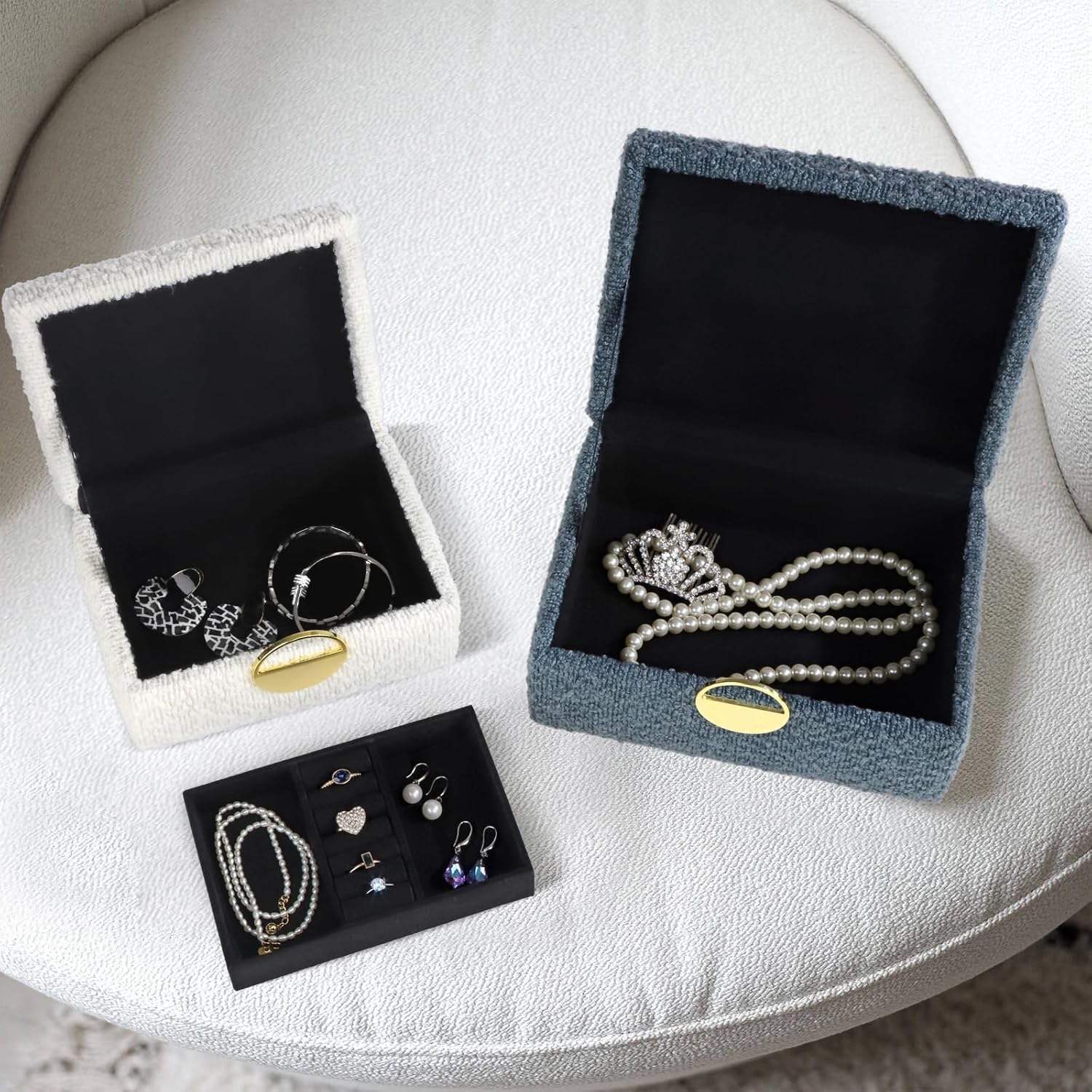 HofferRuffer Velvet Jewelry Boxes, Keepsake Boxes Decorative Boxes, Storage Accessory Organizer Boxes with Elegant Handle Decor, Classic Velvet Set of 2 Pieces (Modern)