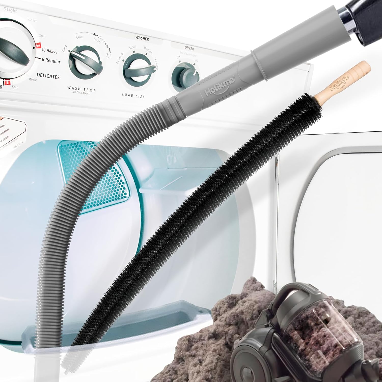 About this itemnHome Essentials: Holikme dryer vent cleaner kit can easily help you to remove years of built up lint from your dryer vent, making your appliance runs more efficiently and securely; Suitable for most dryer types, please kindly check our product size information for reference in order to better shopping experiencenHome & Kitchen Gadgets: Flexible and handy vacuum hose is perfect for cleaning behind appliances beyond your reach; For effective use in dryer vents, insert the attachment slowly to ensure it reaches as far into the vent as possible; If possible, use a vacuum with higher suction powernFits Almost Vacuum: Our vacuum hose adapter is suitable for most vacuum cleaners; it is easy to assemble and use; NOTICE: Not Fit For Dy-son and cordless Vacuum CleanersnFlexible Lint Brush: This extra long brush is specially designed for cleaning your dryer’s trapped lint, and also for cleaning the coils behind your refrigerator; When cleaning dryer vent, it is recommended to first use the flexible Lint brush to loosen lint in the vent, and then connect the vacuum cleaner with a hose to suck out the lintnRegular Cleaning: Always clean the lint trap after every use to reduce the amount of lint that ends up in the vent; Clean your dryer vents regularly to prevent excessive buildup and potential dryer fires