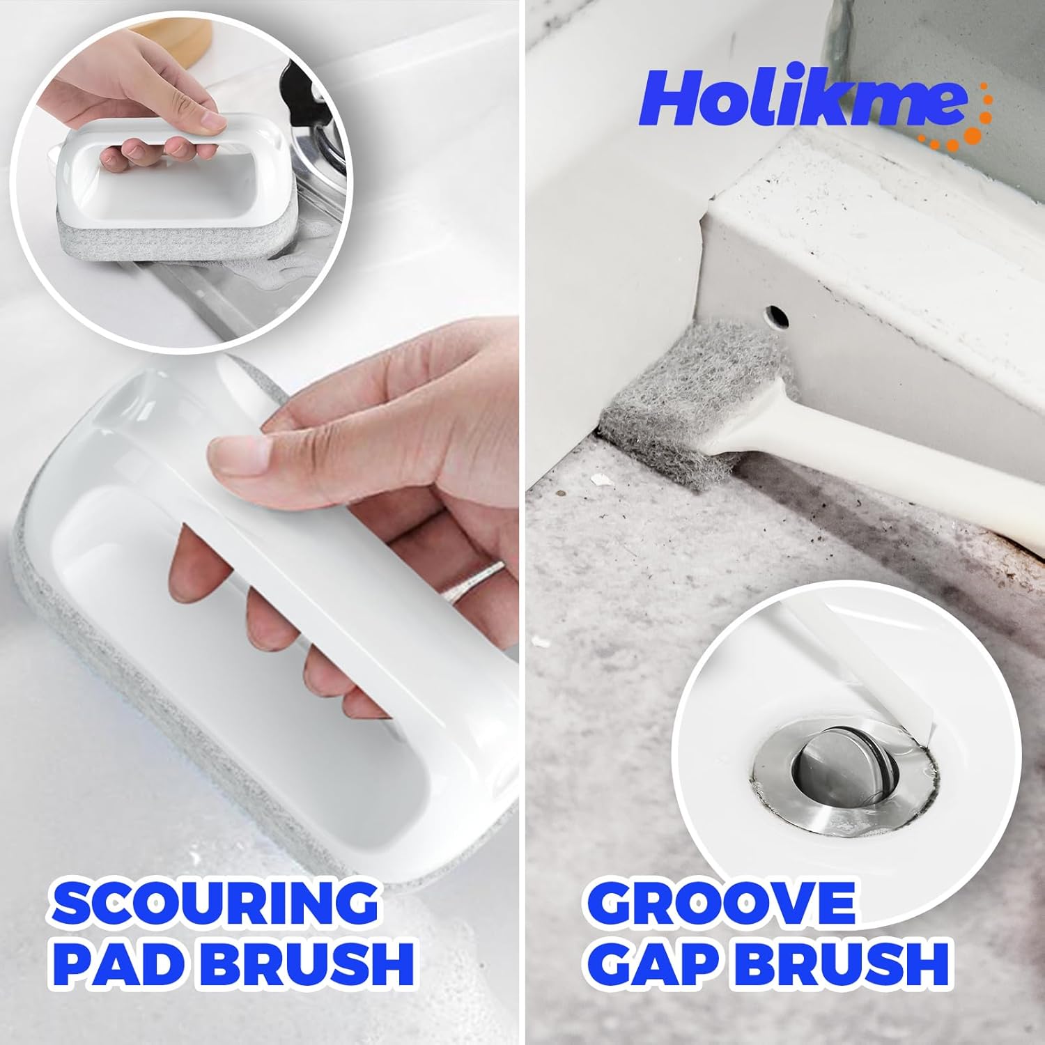 About this itemnKitchen dish brush set includes 1 dish scouring pad, 2 dish cleaning brushes, 1 bendable kitchen brush, 1 tile lines brush, 2 groove gap brushes.nDish Scouring Pad is soft and firendly for the surface; It can clean the dish, sink, tableware, stainless steel and etc.nDish cleaning brushes have nylon bristles which are easily scrub the stains away; Built-in scraper removes baked-on spots; It can clean the pots, pans, dishes and etc.nBendable kitchen brush with the bendable design makes it easier to clean the corner and the curved surface, it can also be used for normal shape.nTile lines brush helps to clean the corners of your home; It can clean the tile seam, car, tiny gap and etc.