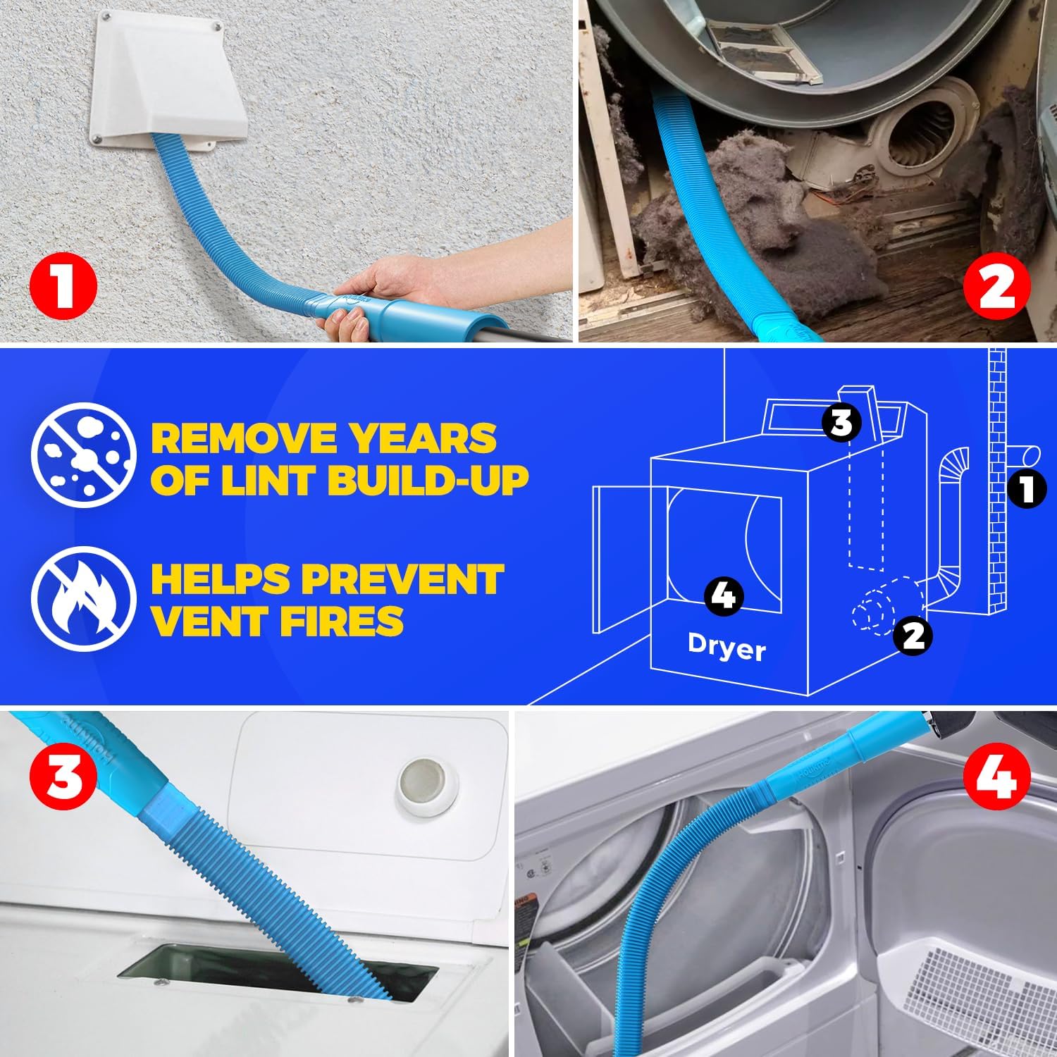 Holikme Dryer Vent Cleaner Kit, Dryer Cleaning Tools, Include Dryer Vent Brush, Omnidirectional Blue Dryer Lint Vacuum Attachment, Dryer Lint Trap Brush, Vacuum & Dryer Adapters