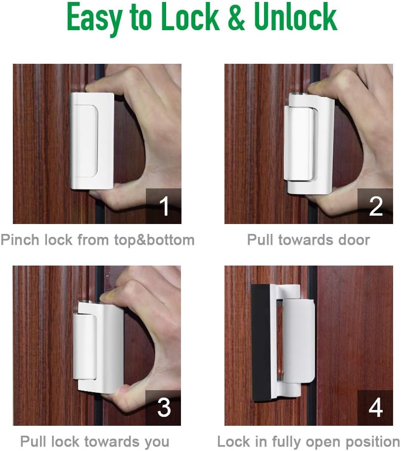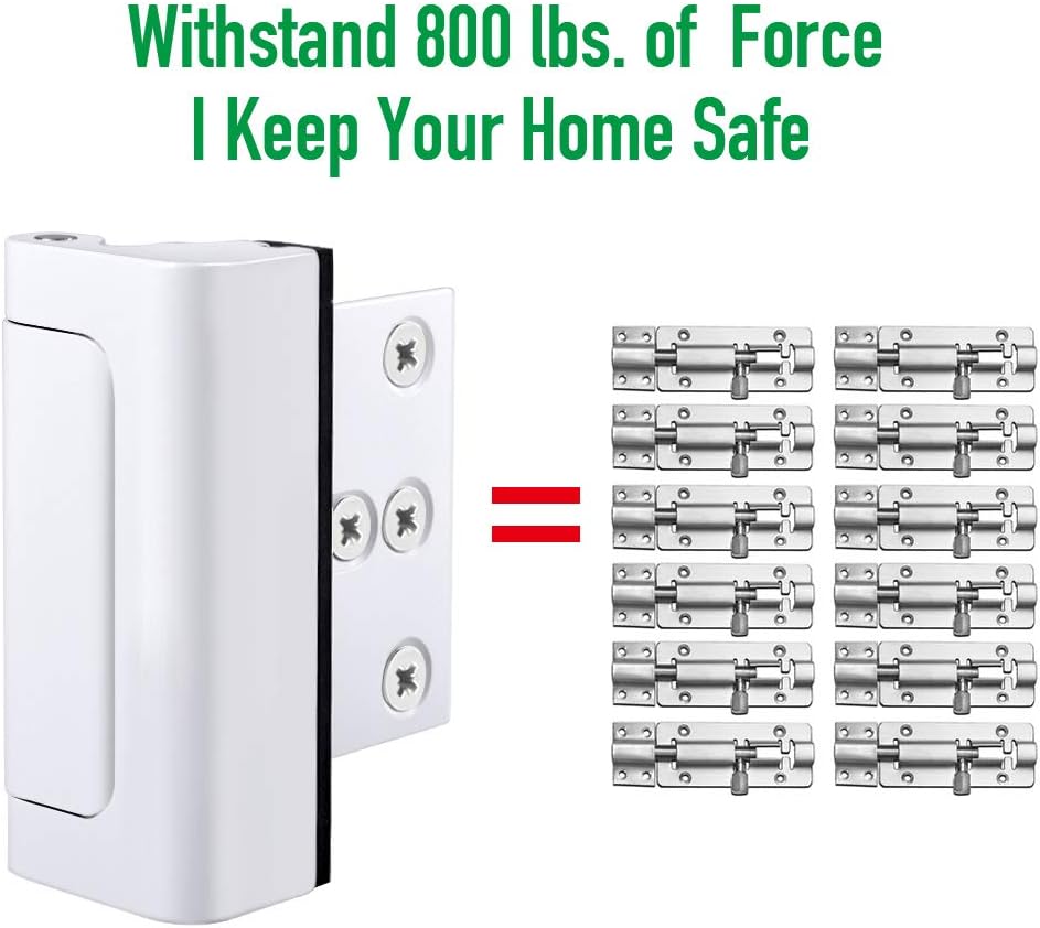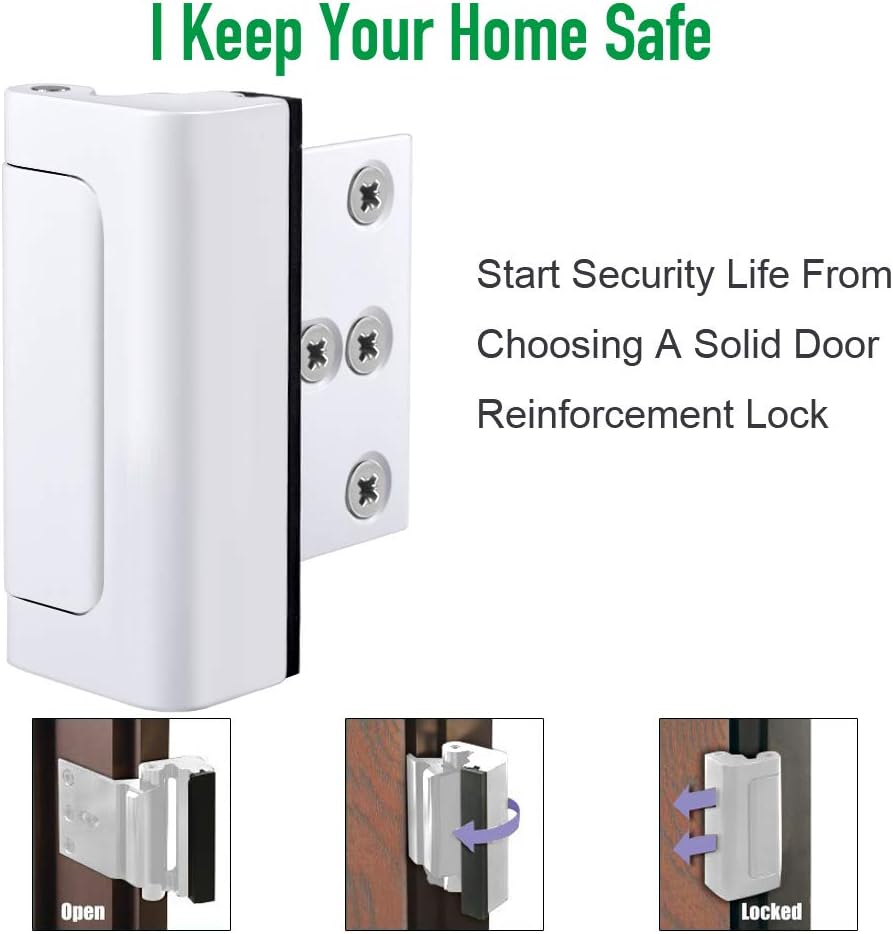 [Keep your home safe] CRANACH security door lock Designed to withstand 800 lbs. of force, 12times stronger than a normal deadbolt to against being kicked in,this reinforcement lock increasing your home security and keeping you and your family safen[Childproofing and Tamper-resistant] This door guardian has a spring-loaded design which can keep child safe. The child proof door locks can be installed higher on the door where your children cant reach! Plus, prevent child from opening the door to unknown peoplen[Easy to Install] Use power screwdriver and drill to mount CRANACH security door lock on your door frame ,finish DIY. CRANACH reinforcement door lock installation less than 5 minutes.Equipped with two sets of screws, four 1