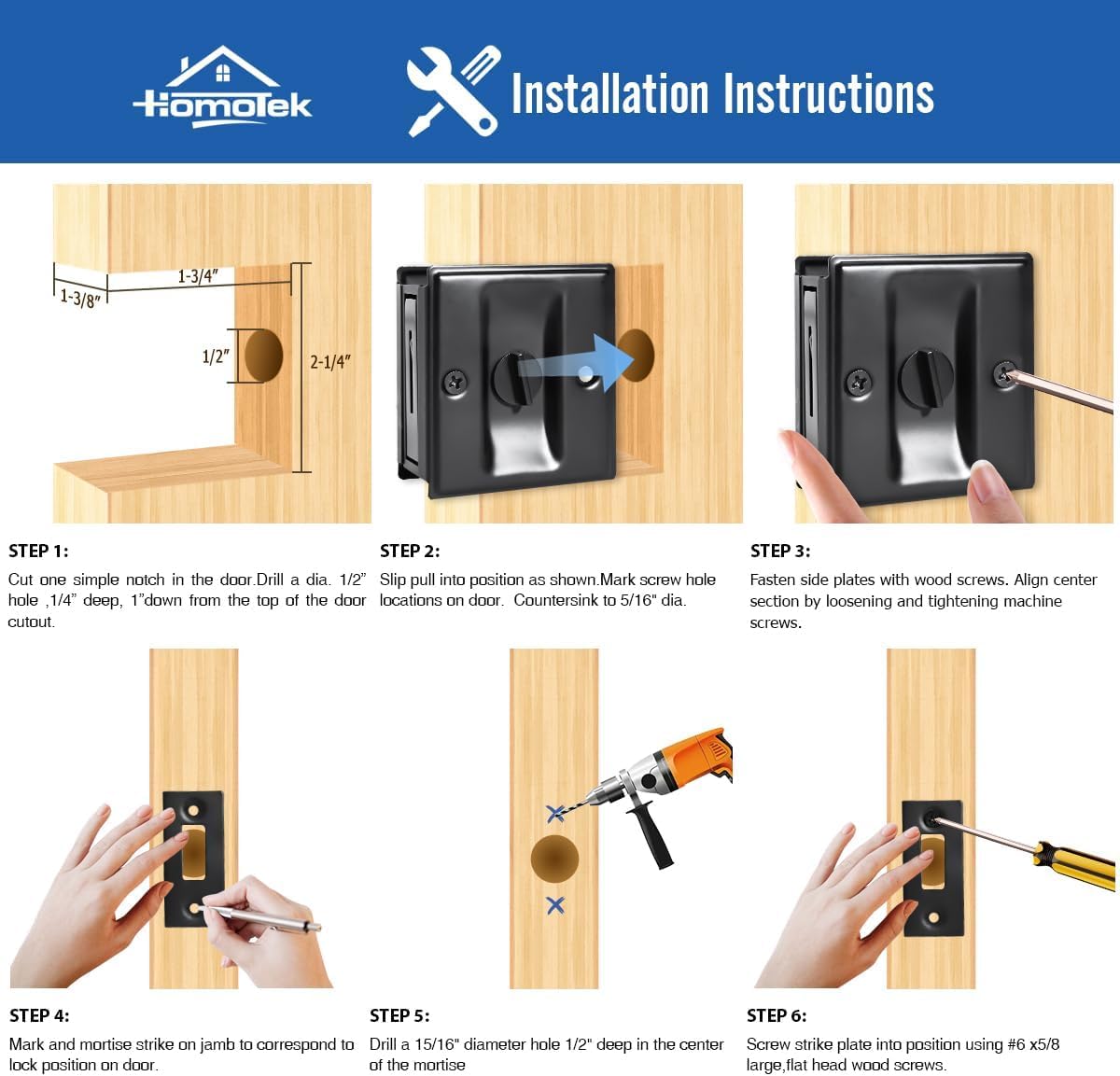 HOMOTEK Privacy Sliding Door Lock with Pull – Replace Old Or Damaged Pocket Locks Hardware Quickly and Easily, 2-3/4”x2-1/2”, for 1-3/8” Thickness Door, Black