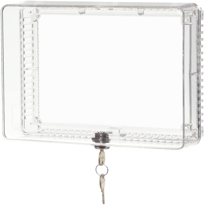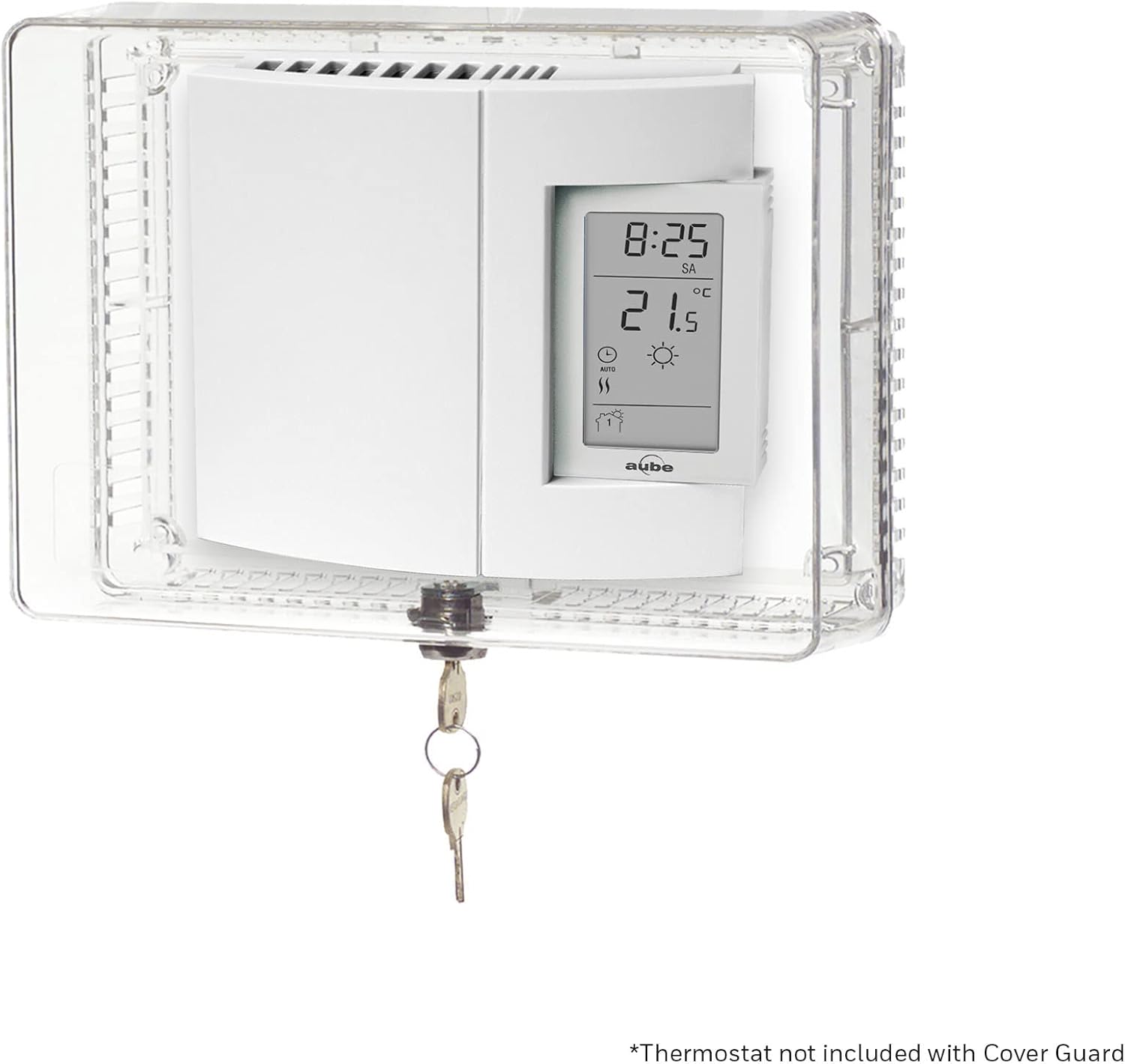 About this itemnProtect again tampering, damage and unauthorized adjustment of thermostat settings.nKey lock with inner shelf to prevent tampering. You can mount this thermostat guard horizontally or vertically to fit your thermostat.nClear plastic casing is chemical and UV resistant that resists yellowing.nFits Honeywell Home thermostats measuring 8. 25