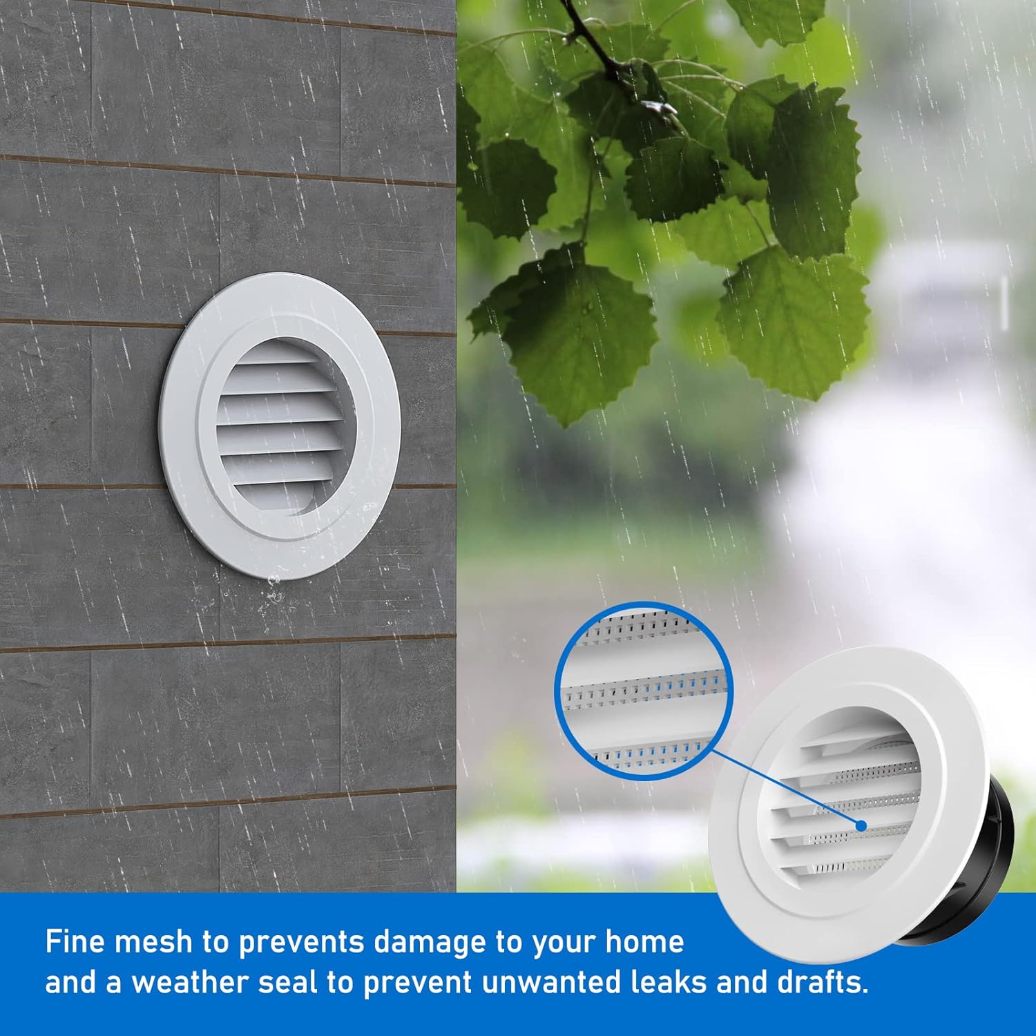 Hon&Guan 4” dryer vent cover is made of high quality ABS.nDiameter 100mm, sleeve height 75mm.nHon&Guan extractor vent outlet has a fine mesh to prevents damage to your home and a weather seal to prevent unwanted leaks and drafts.nPanel and black sleeves are detachable, easy to clean and maintain.nWall mounted or celling mounted, perfect for bathroom, office, room exhaust and ventilation use.n See more product details