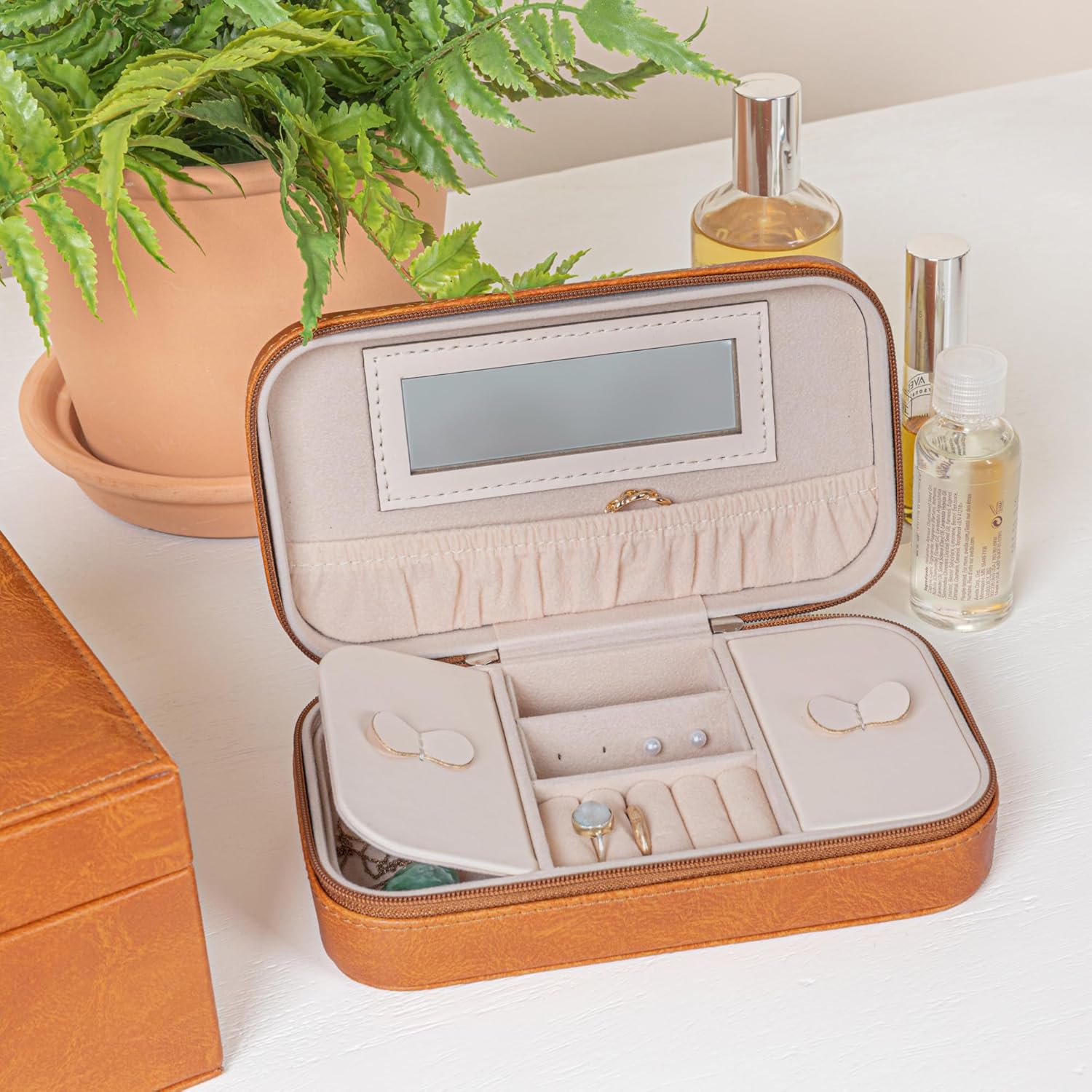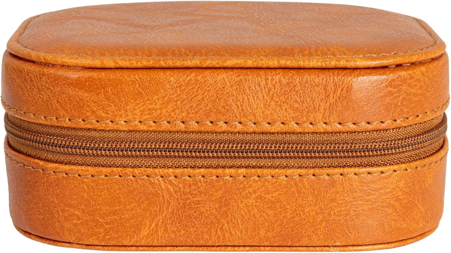 Household Essentials Vegan Leather Travel Jewelry Organizer Box, Caramel Color