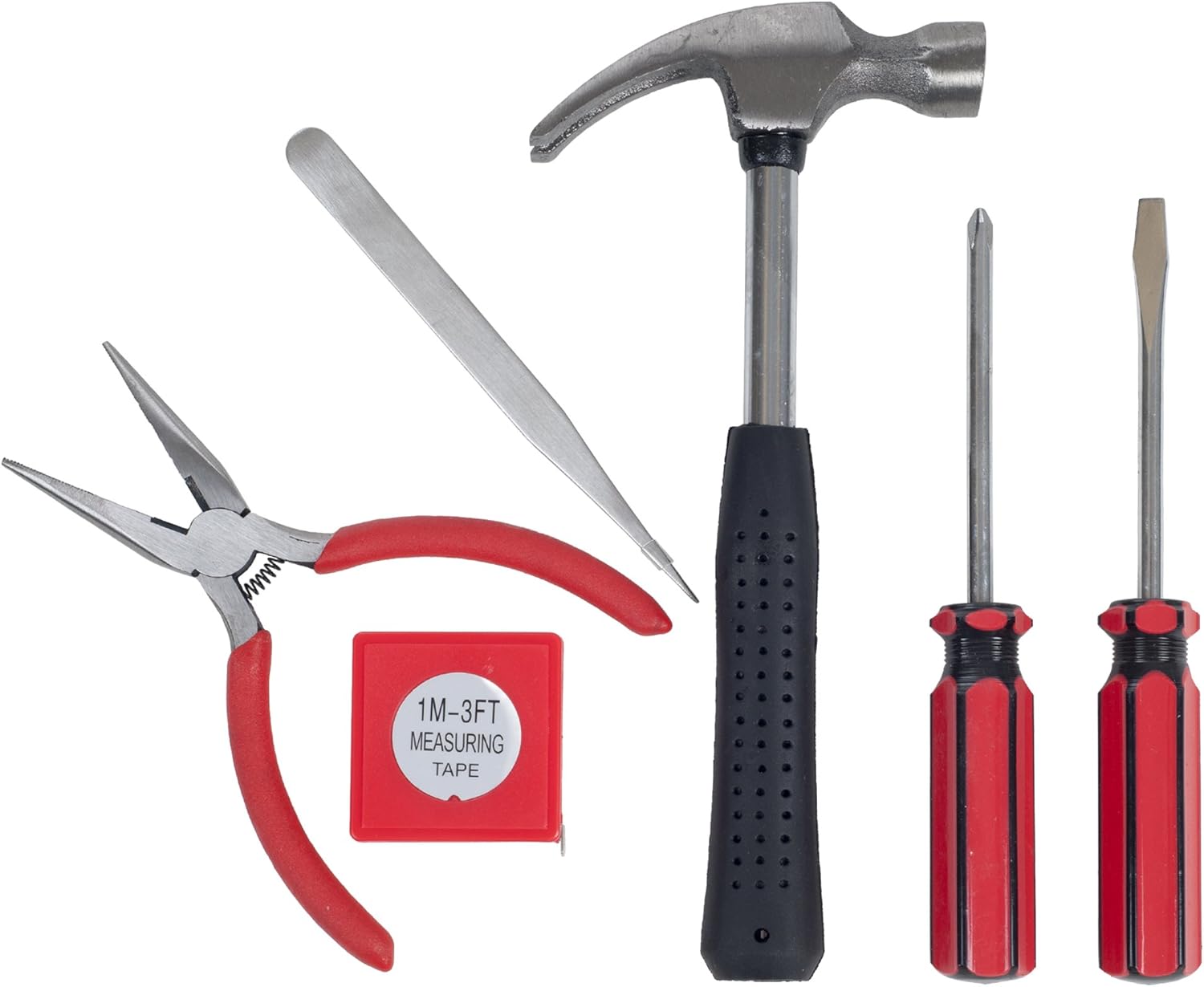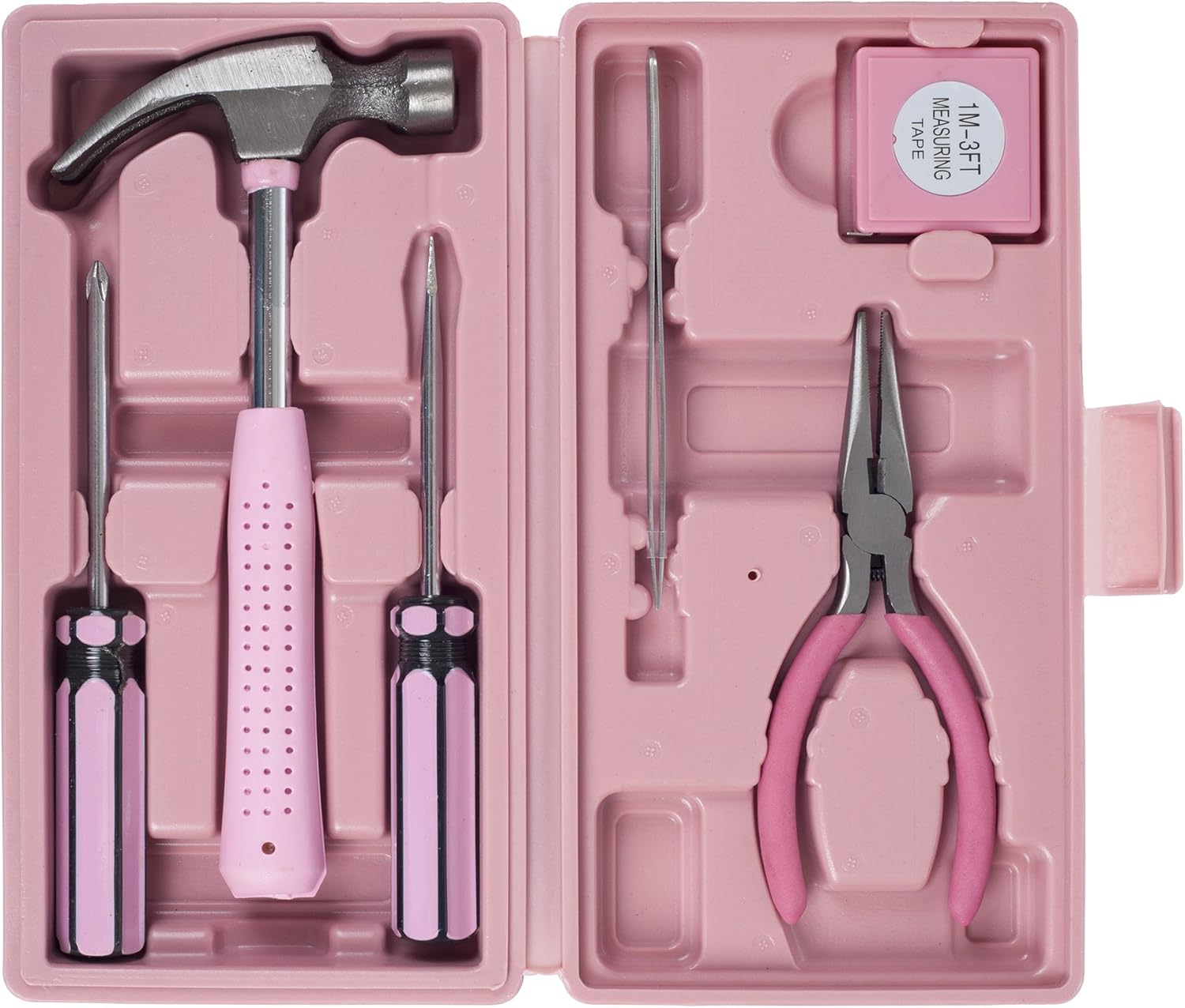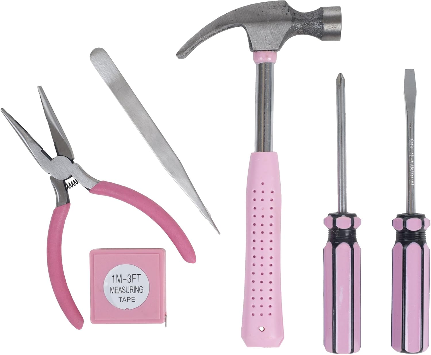 About this itemnESSENTIAL FOR ANY PROJECT Tool kit comes with all the household essential tools you would need for almost all minor maintenances. Stalwart Tools are made from durable metal construction giving you the ultimate precision. Great for DIY projects or every day home improvements.nSTORES CONVENIENTLY This well-organized kit comes in a compact durable plastic carrying case that fits anywhere in your home, apartment, garage, or even the car. Carrying Case Dimensions: 8.25 x 4.5 x 1.75 inches, Color: PinknGENERAL USES 7-piece tool set is designed to tackle most assembly, repair projects, or little emergencies around the house or office. Fixing leaky kitchen or bathroom faucets, hanging up pictures, or tightening up a loose screw on your bike, this tool set has everything you will need from hammering, screwing, measuring, and more.nSET INCLUDES 6