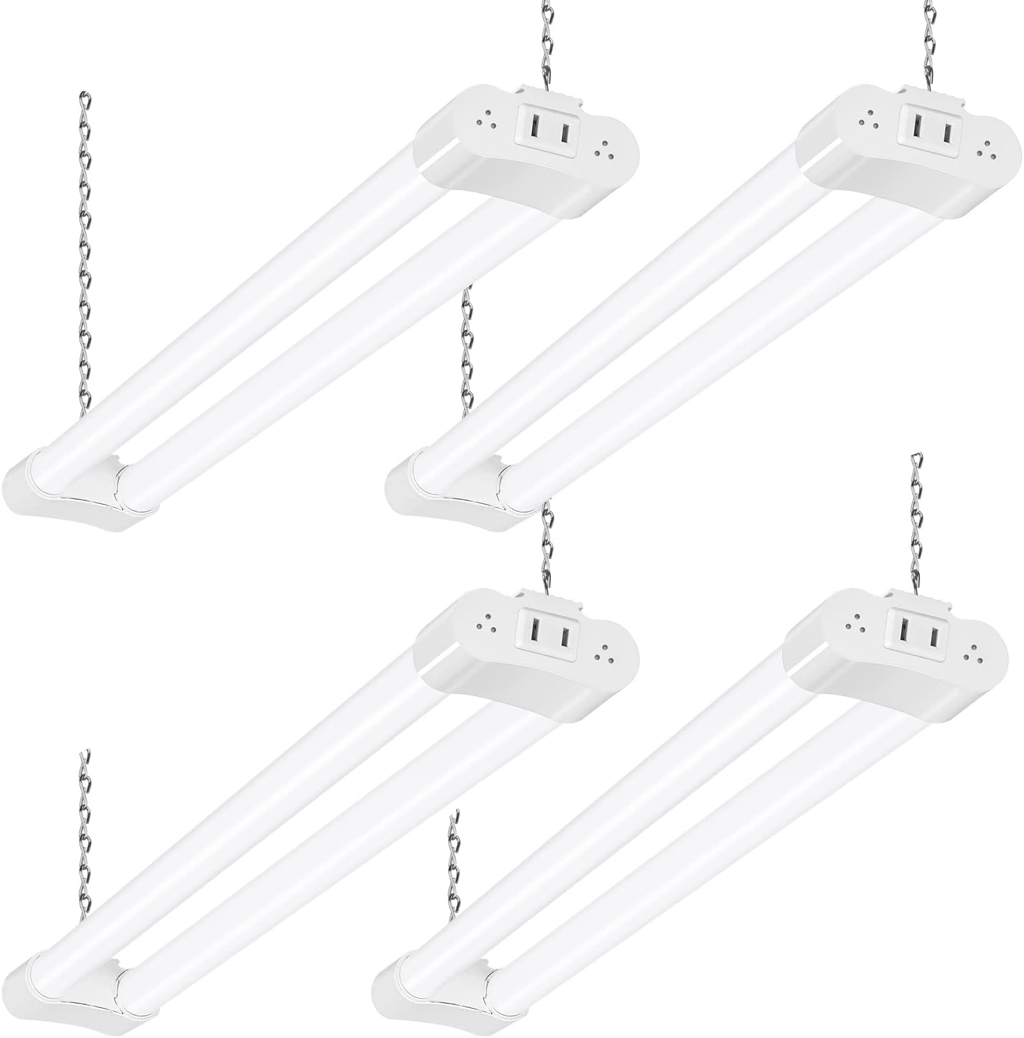 hykolity 4 Pack Linkable LED Shop Light for Garage, 2FT 22W Utility Light Fixture, 2500lm, 5000K Daylight LED Workbench Light with Power Cord, Hanging or Flush Mount, White – ETL