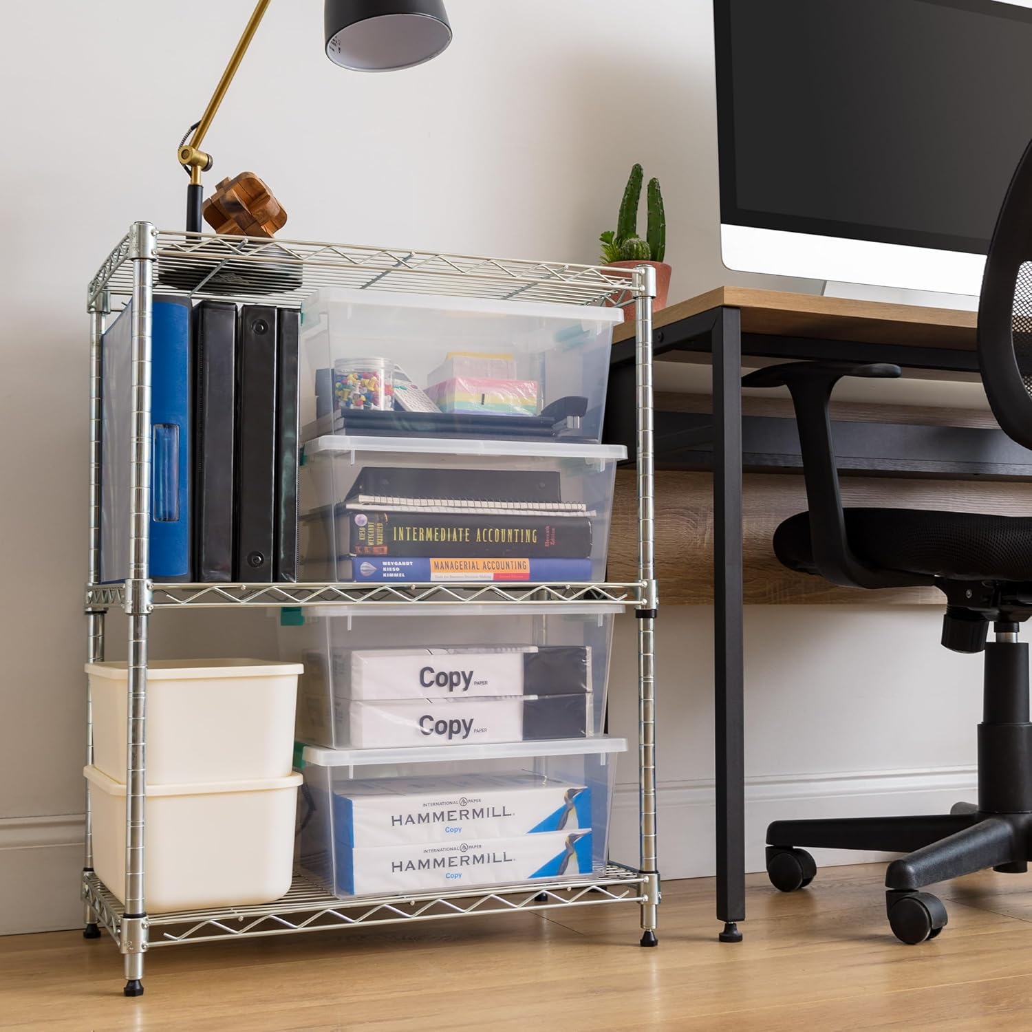 About this itemnMADE IN USA WITH GLOBAL MATERIALS IRIS USAs Storage Bins are a perfect storage organizer that can fit all your items safely with the anti-break, durable polypropylene material manufactured in the USA.nMULTI-PURPOSE BINS 12 Qt. 4-pack Deep Storage Box is ideal for home, office, or school. Perfect for (8.5 x 11) paper, files, documents, crafts, pantry items like cereal bars, and kid’s toys. Organize efficiently with this multi-purpose solution!nBUCKLE UP The two buckles latch onto the durable plastic lid, separating the inside and outside. Any valuables are safe from dust and liquids when securely buckled.nSEE-THROUGH No more looking for your precious stuff. The clear design of these storage bins allows you to find any stored items instantly from any angle.nDIMENSIONS – Outside Dimensions: 14
