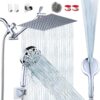 8''Rainfall Shower Head with Handheld Combo High Pressure 8+2 MODE built-in power wash, Stainless Steel Chrome Showerhead with 11'' Extension Arm Height/Angle Adjustable with Holder&60