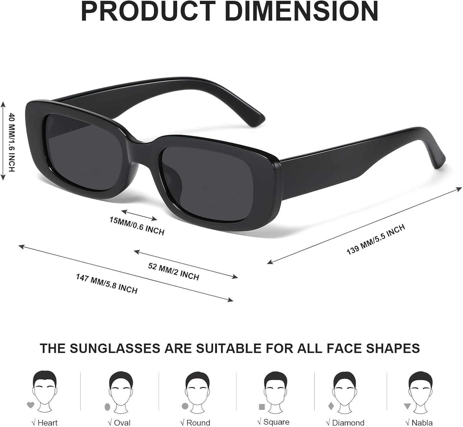 JASPIN Rectangle Sunglasses for Women Men Trendy Y2k Retro 90s Sun Glasses UV400 Protection Cool Square Frame