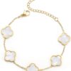 18K Gold Plated Clover Lucky Bracelet for Women White/Black/Red/Green Flower Four Leaf Link Bracelets Trendy Jewelry Gifts for Women