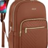 LOVEVOOK Leather Backpack for Women,15.6 inch Leather Laptop Backpack Women Computer Backpack Laptop Bag,Stylish Quilted Travel Backpack Purse Work Bag College Teacher Backpack with USB Port,Brown