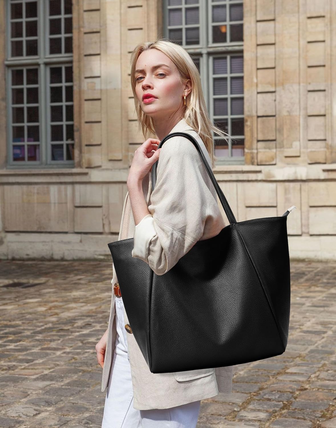 KALIDI Large Tote Bag Vegan Leather Casual Zipper Work Bag Weekender Hobo for Women 23L Oversize Shoulder Travel Purse