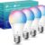 Kasa Smart Light Bulbs, Full Color Changing Dimmable Smart WiFi Bulbs Compatible with Alexa and Google Home, A19, 9W 800 Lumens,2.4Ghz only, No Hub Required, 4 Count (Pack of 1), Multicolor (KL125P4)
