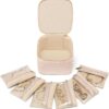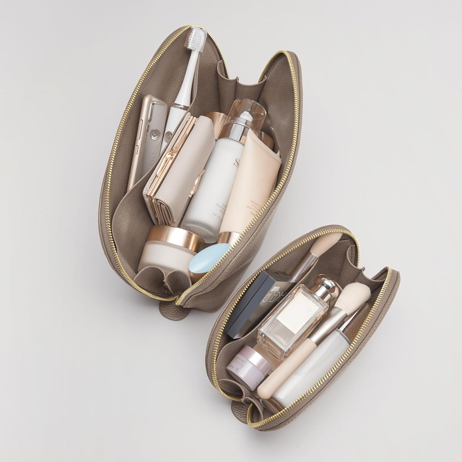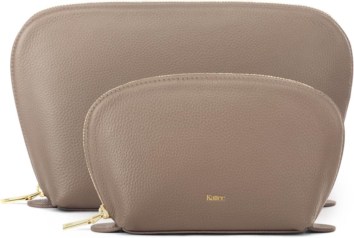 Kattee Leather Makeup Bag, Travel Cosmetic Bag Set, Toiletry bag Organizer for Women, 2-PACK, Khaki