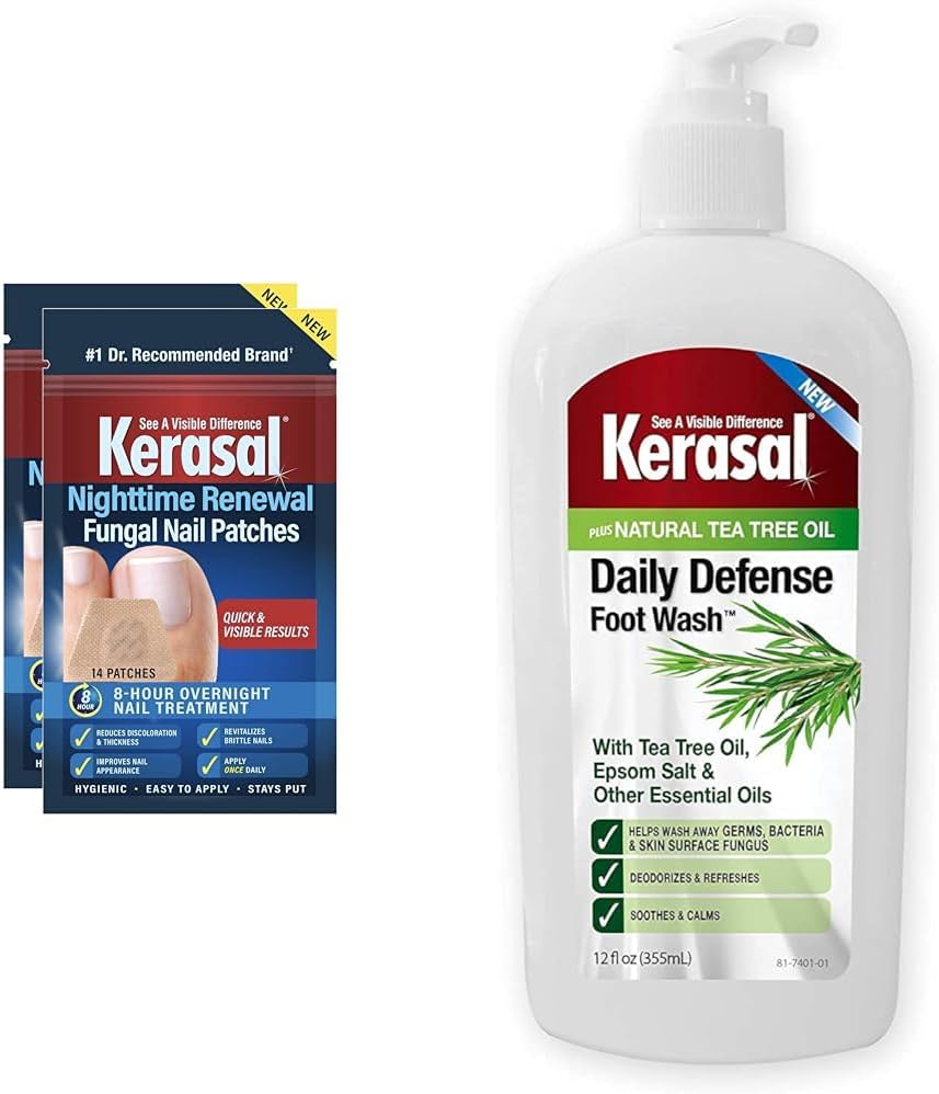 About this itemnPremium nail repair for nail fungus damage: The first and only nail treatment for fungal nail damage that works while you sleep; from the #1 doctor recommended brand shown to improve the appearance of fungus damaged nails?nRestore to reveal healthier-looking nails: Kerasal nighttime patches deeply penetrate, moisturize and exfoliate the nail plate to reduce discoloration, help normalize thickness and smooth the nail ?nWeve got you covered: The average prescription nail fungus treatment is not formulated to improve the appearance of the nail, however Kerasal patches are specially designed to restore a healthy nail appearancenThe hygienic patches are easy to apply and stay in place to ensure continuous 6-8-hour nail care?nIt is recommended to apply before bedtime for 3-6 months for continued nail treatment; patches may be used during the day if more convenient; see packaging for full details and instructions?