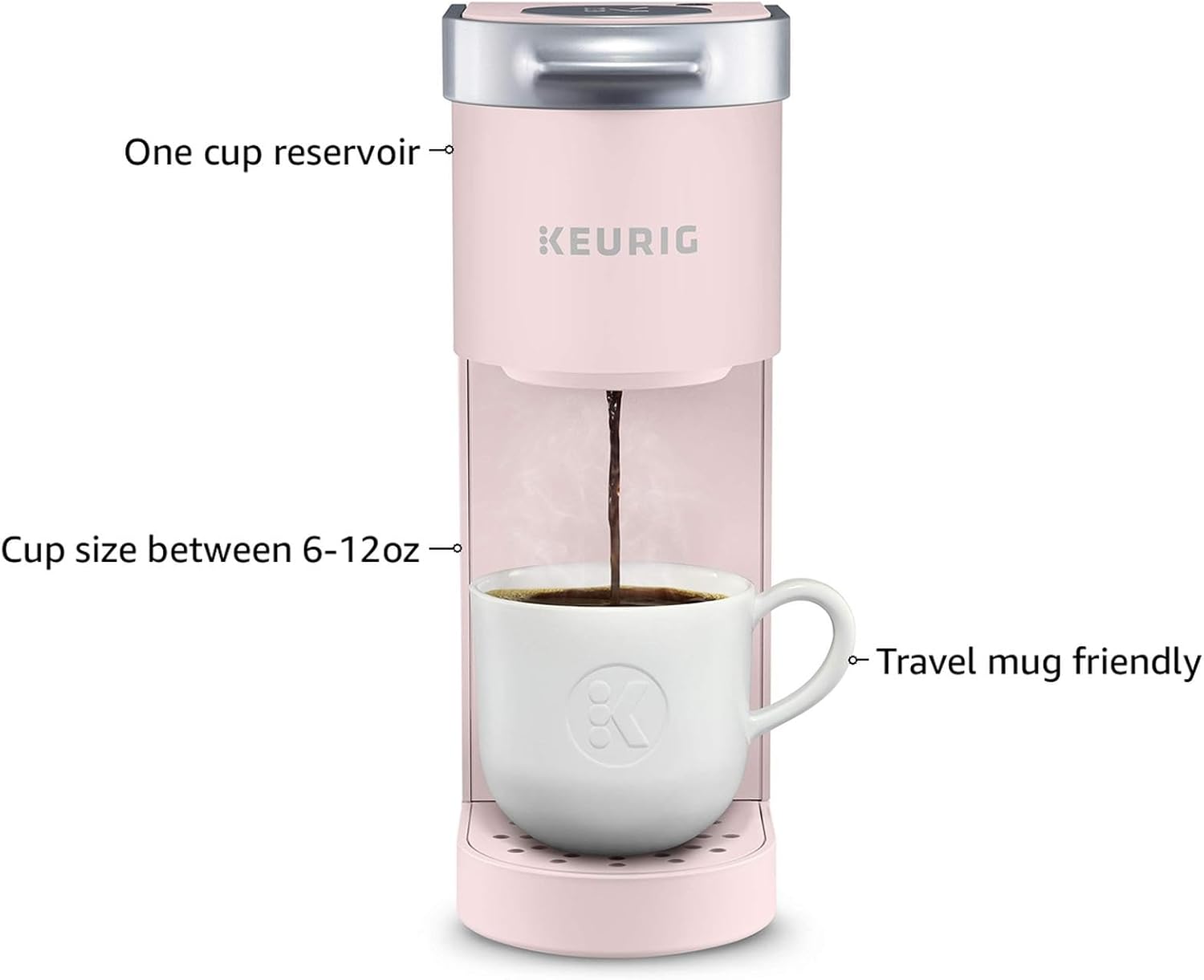 Keurig K-Mini Single Serve K-Cup Pod Coffee Maker, 6 to 12oz Brew size, with Cord Storage, Perfect for Small Spaces, Dusty Rose