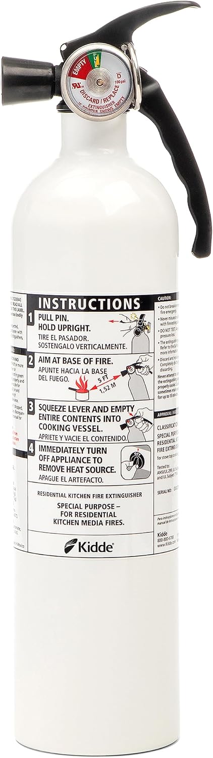 Kidde Kitchen Fire Extinguisher, Home Use for Grease Fires, 3.9 Lbs., Wall Mount Included, White