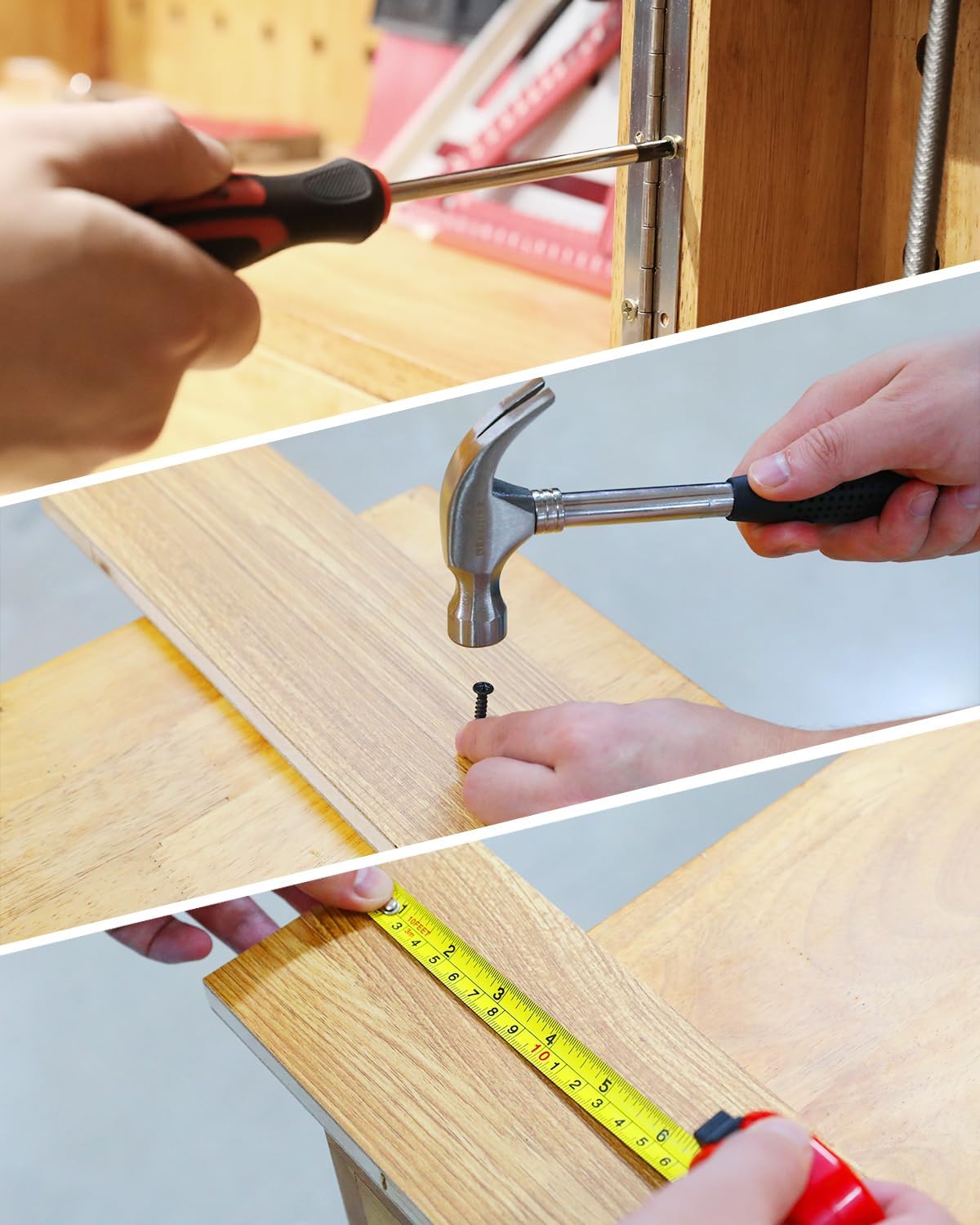 [Toolbox Included] – Assortment of necessary tools are in one tool chest, durable plastic case with internal molded compartments to keep each component protected and easily accessible. All tools meet or exceed ANSI standard.n[High Quality Material] – Made of high-quality steel and finished in heat treated chrome, durable and corrosion resistance. Handles made of TPR material, comfortable for grip.n[Muti-Purpose Toolkit] – Multi-function 149Pcs tool sets for most small repairs and DIY projects around the house. It is perfect for homeowner, handyman, work shops, office and college repairs etc. This mini tool kit is also a good gift choice for family member, friends, partners, etc.n[Complete Varieties] – 8 pieces hex key set, precision screwdrivers, hammer, tape measure, pliers etc. The bit holders, 9mm utility cutter, scissor and 106 pieces fasteners. Variety of 1/4-inch screwdriver bits: Phillips, slotted, square, star and pozi. Soft-grip handle on screwdrivers, pliers and hammer provides excellent comfort and control.n[Perfect Gift Choice] -This basic tool kit is easy to carry , to stock and is an excellent basic tool kit for home. It is a good gift choice for men and women. Also, this herramientas de mecanica is perfect for Father’s Day, and is a great option as gift for Parents, Lover, Brothers & Sisters at Christmas.n› See more product details