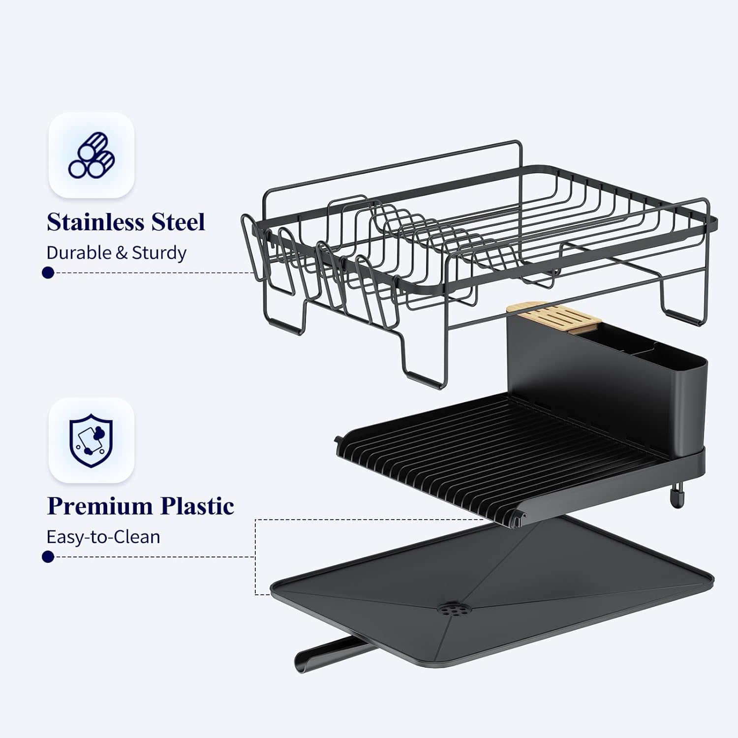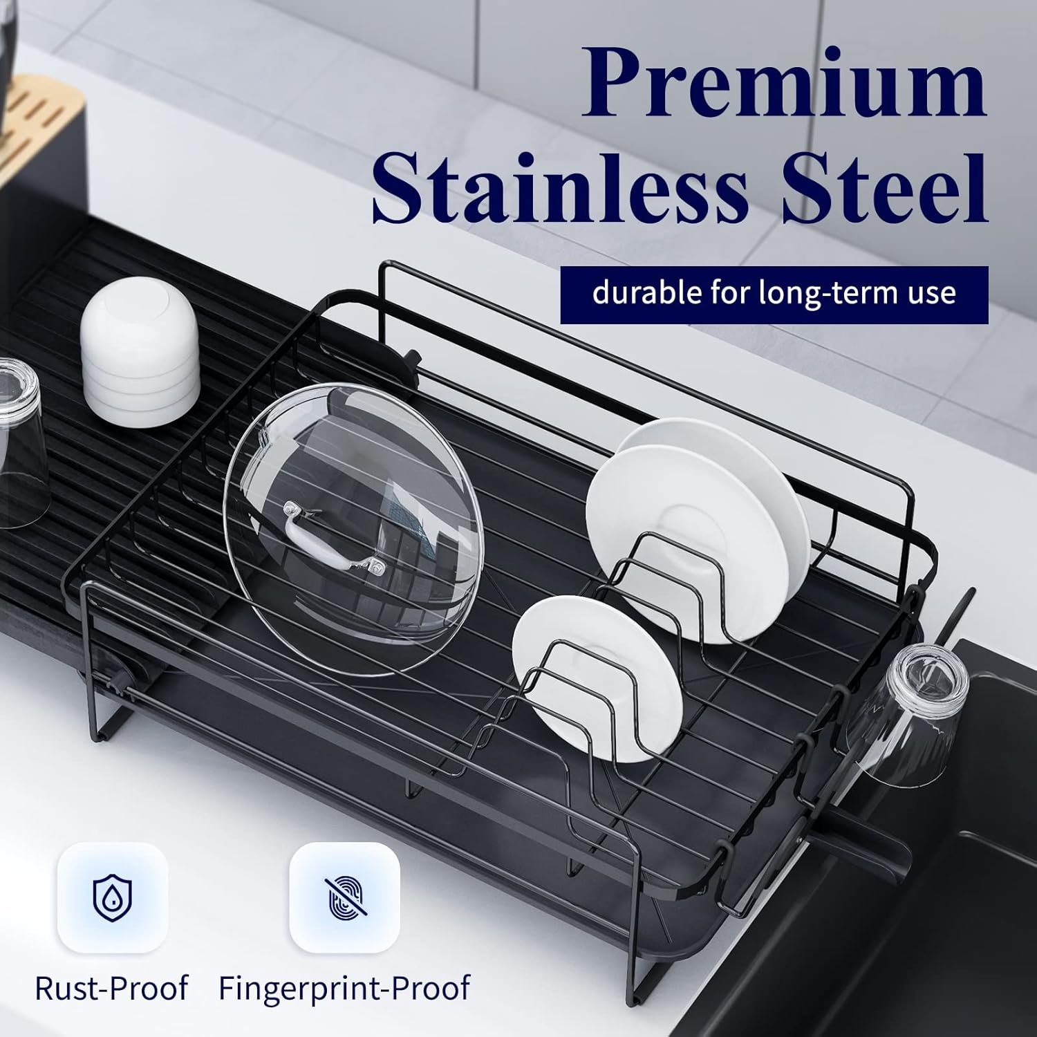 Kitsure Large Dish Drying Rack – Extendable Dish Rack, Multifunctional Dish Rack for Kitchen Counter, Anti-Rust Drying Dish Rack with Cutlery & Cup Holders 19.2