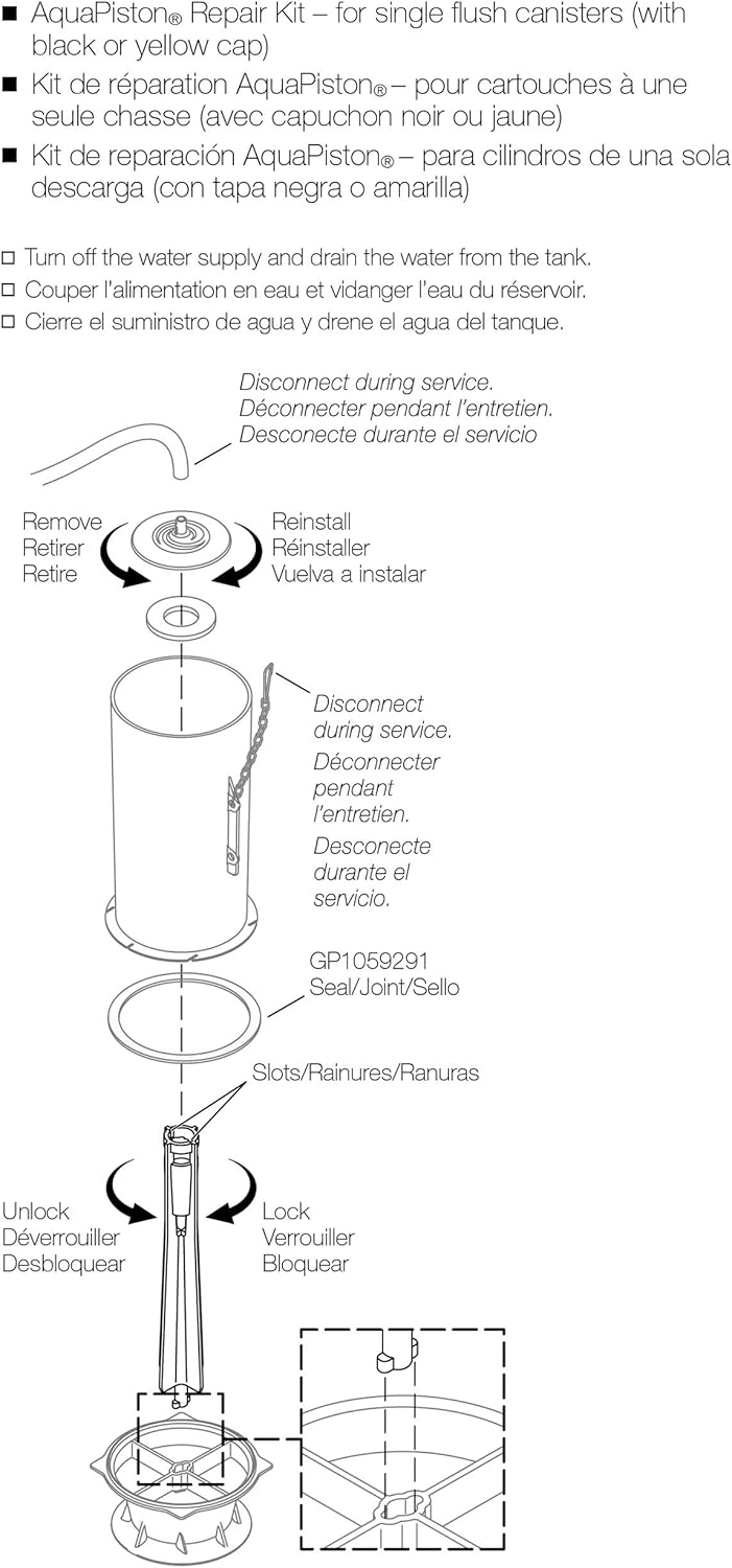 About this itemnProtect the on KOHLER products, always look for the KOHLER GENUINE PARTS logonRepair kit for single flush canister toiletsnIncludes cap, center guide and chainnRecommend also replacing seal part number GP1059291n See more product details