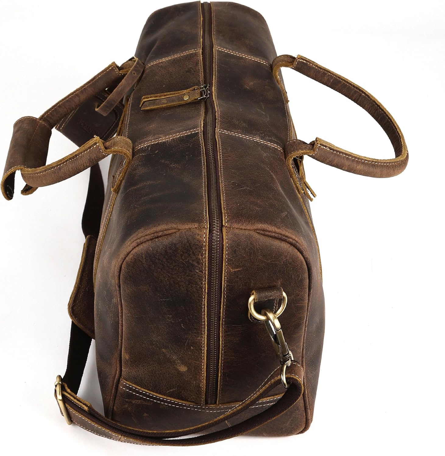 KomalC Leather Travel Duffel Bags for Men and Women Full Grain Leather Overnight Weekend Leather Bags Sports Gym Duffle