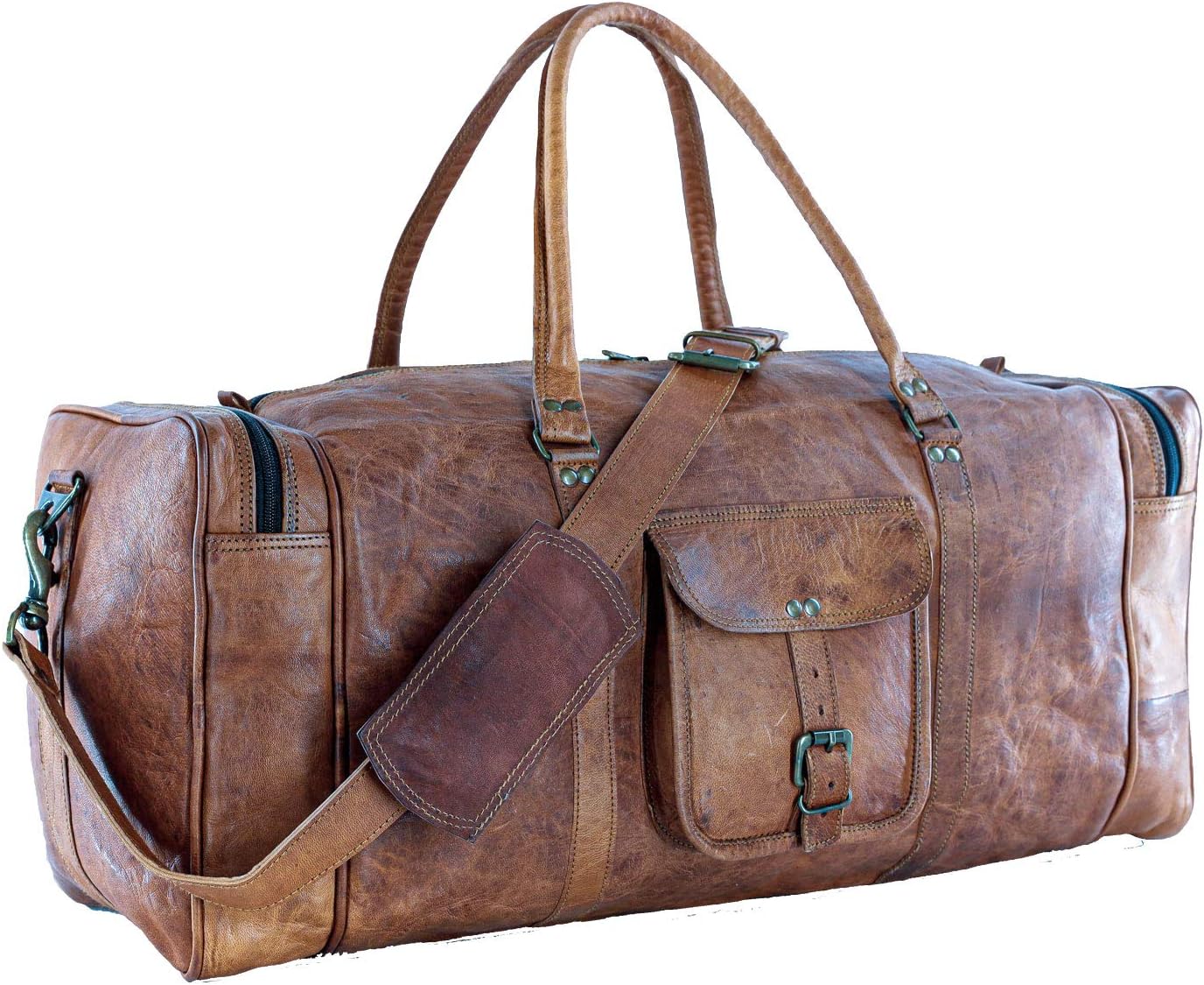 KPL 21 Inch Vintage Leather Duffel Travel Gym Sports Overnight Weekend Duffle Bags for men and women