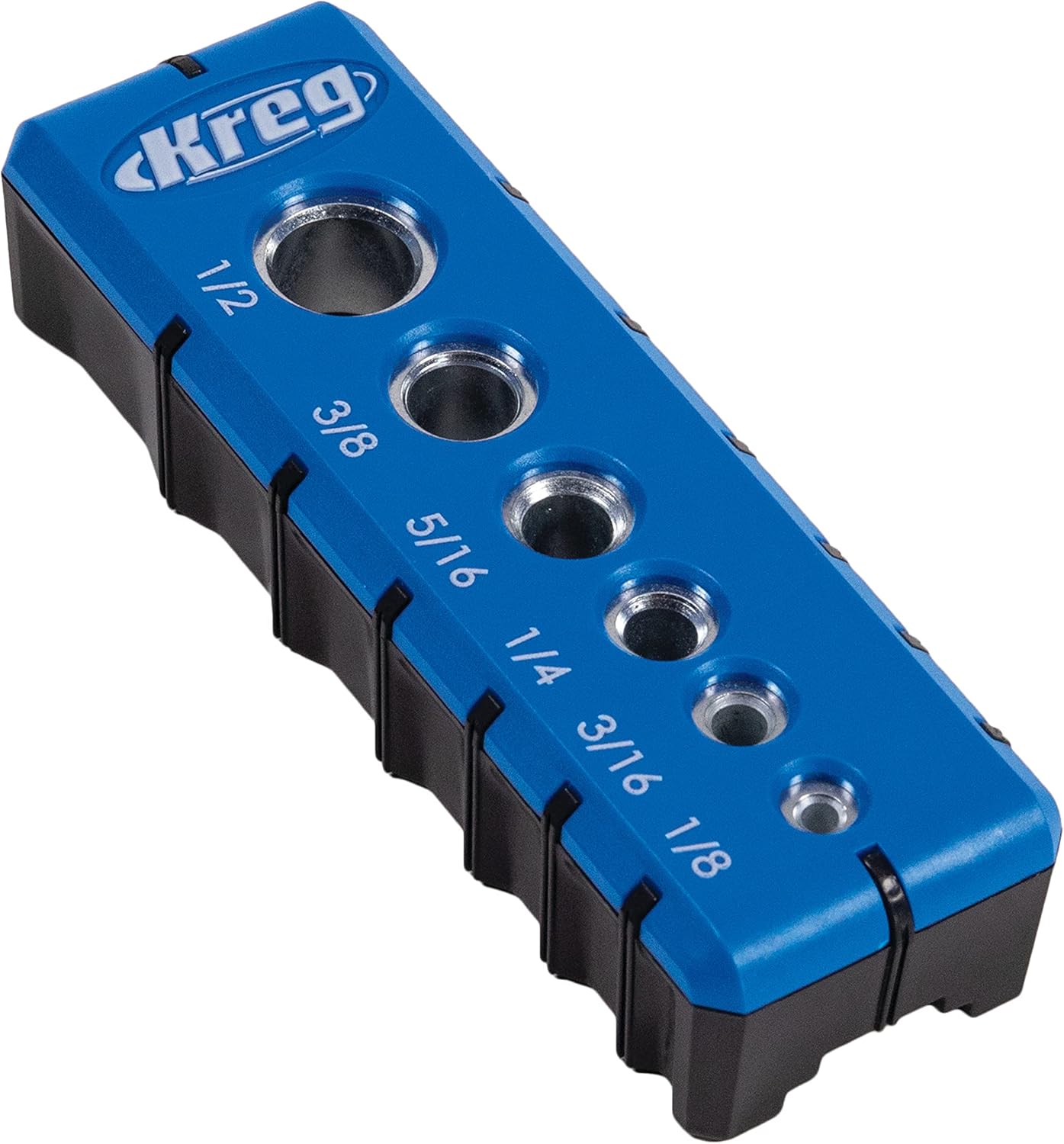 About this itemnWoodworking & Carpenter Gifts for Men: At Kreg Tools, we offer tools for home improvement and DIY projects that make great gifts for dads, brothers, or any woodworker in your lifenPremium Home Improvement Tools: Drill guide can create perfectly positioned holes thanks to 6 built-in hole alignment marksnMultiple Drill Guide Sizes: This woodworking tool features guide sizes of 1/8, 3/16, 1/4, 5/16, 3/8, and 1/2 of an inchnVersatile Carpentry Tools: This drill guide has a GripMaxx surface to prevent slipping; the guide centers itself on 1/2-inch and 3/4-inch material edgesnPremium Kreg Tools: We offer products that help woodworkers close the gap between idea and outcomen See more product details