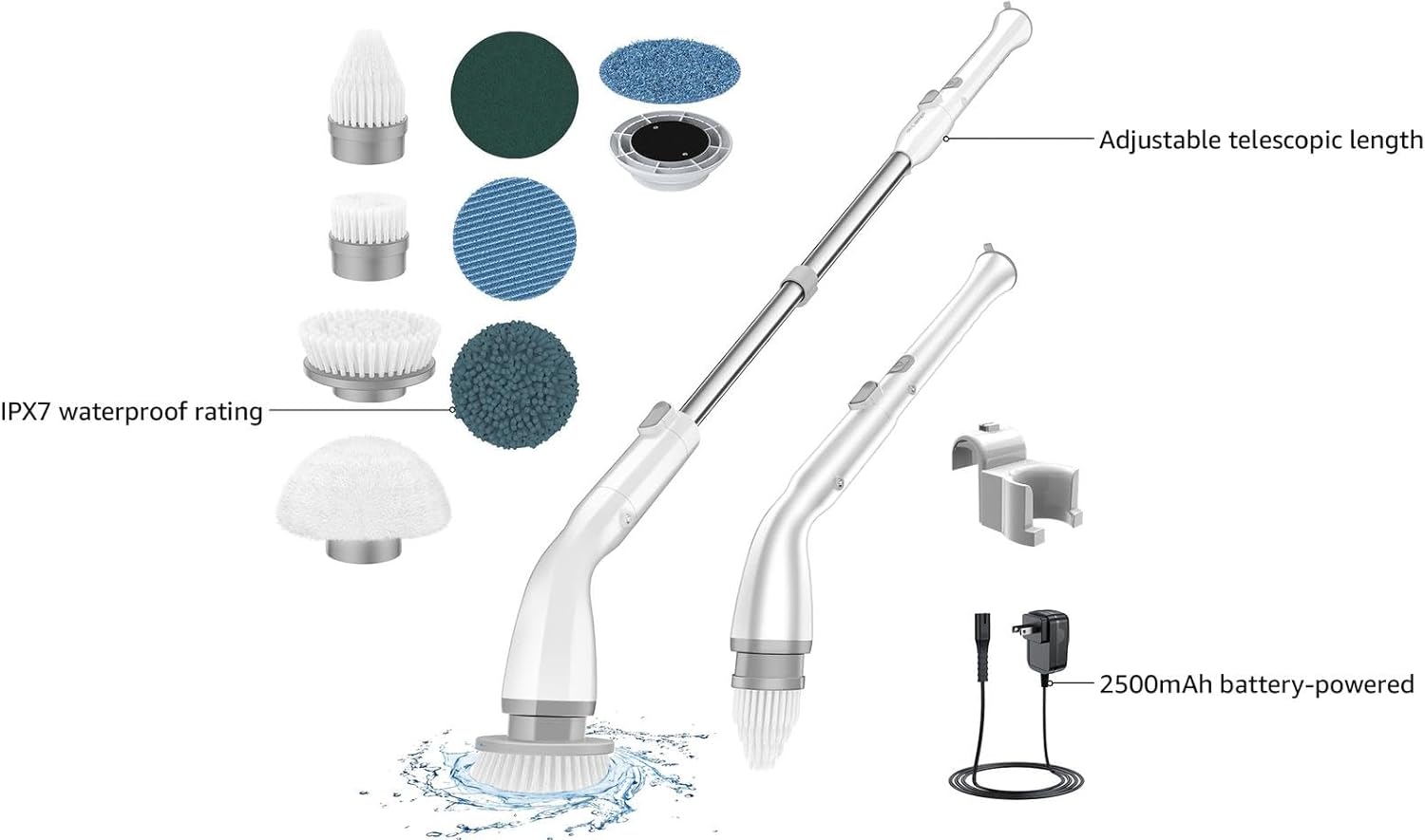 About this itemnEfficient Cleaning Companion: LABIGO Electric Spin Scrubber streamlines household cleaning, saving time and effort with its ergonomic design that eliminates the need for bending or kneeling. For tough stains, pre-soak in detergent for 5 mins before usenPowerful Performance: LABIGO scrub brush (model: LA1 Pro) Equipped with a high-speed motor rotating at up to 400RPM, this scrubber handles various surfaces like shower bathrooms, bathtubs, and tile floors efficiently, ensuring a thorough clean every timenConvenient Cordless Operation: Experience up to 90 minutes of cordless cleaning after just 3.5 hours of rapid charging, allowing you to effortlessly reach all corners of your living space without any tangled wires. the cleaning brush volume is under 70dbn7 Brush Heads : LABIGO household cleaning tool Cordless features 7 replaceable brush heads, tailored for diverse cleaning scenarios, ensuring efficient and effective cleaning on different surfaces like bathroom, bath tub,stone tile,floor,grout,carnExtendable Rod : The electric bathroom scrubber is equipped with a detachable and retractable metal extension rod, allowing easy access to tight corners and high spots, making cleaning under furniture, around faucets, and in ceiling corners a breezenQuality Assurance & Support: LABIGO shower scrubber ensures durable performance with 7 thick brush heads, catering to a range of cleaning tasks. If you have any requests or issues, we promise to solve them within 24 hoursnComprehensive Gift Set: This bathroom cleaner set, which includes 1 Manual, 1 Corner brush?7 Brush Head, serves as a thoughtful gift idea for friends and family, providing them with a practical solution for their cleaning needs