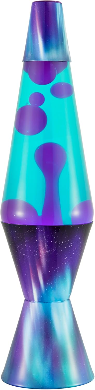 About this itemnMesmerizing Aurora Borealis Effect: This iconic Lava Lamp from the original brand brings the captivating colors of the Northern Lights into your space, with vibrant purple lava flowing through a teal liquid in a soothing, calming motion.nClassic Retro Design: Standing 14.5 inches tall, this lamp features a sleek aluminum base, polished glass globe, and a nostalgic retro style that makes it a perfect decorative accent for any room, desk, or bookshelf.nEasy Operation and Quality Construction: Simply plug in the lamp and wait 2-3 hours for the wax to start flowing. With top-quality materials, an included 25-watt incandescent bulb, and a rotary switch, this durable lamp is designed for optimal performance and longevity when used as directed.nThe Original Mood-Setting Masterpiece: Since 1965, Lava has been the household name for these mesmerizing motion lamps, providing a timeless and relaxing ambiance for any age or setting, backed by a 90-day warranty.n See more product details