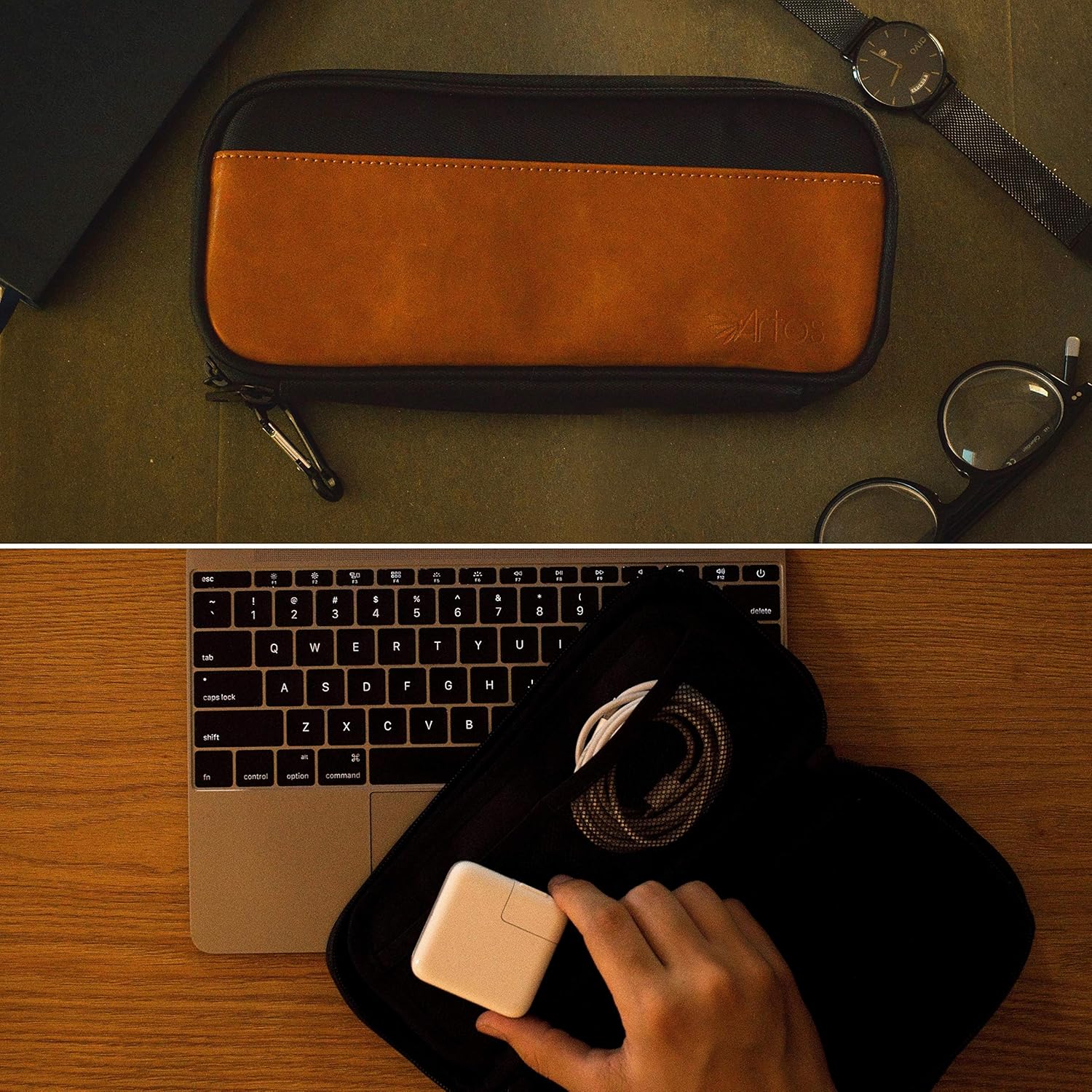 About this itemnEASY TO ACCESS AND CARRY: Our electronic organizer travel case has organized pockets and compartment makes accessibility to your belonging much more convenient and efficient, without having to sift through to find your items. Compact size ensures that you are able to fit in any type of bag.nSAY GOODBYE TO ENTANGLED CABLES: The multiple compartments in this electronics organizer travel case ensures that your cables do not get entangled when removing it from your bag. Interior prevents damages, scratches, dust, water, accidental dropping and misplacement. Also includes adjustable dividers that allows for free collocation, making it more personalized to your needs. COMES WITH BONUS ADD-ON GIFT: 3 leather cable ties!nMULTIFUNCTIONAL: It can be used for different kinds of occasion. This tech organizer travel case fits charging cables, adapters , mouse and earpiece if you are travelling for work. Fits GoPro, portable chargers, sunglasses or cosmetics if you are travelling for holiday.nELEGANT & WATER RESISTANT: Leather and Canvas exterior, stretch-mesh interior for a stylish and comfortable feel. Its waterproof features will grant you a peace of mind whenever you encounter any wet weather conditions. An electronics travel organizer perfect for any occasionnWE BELIEVE THAT YOU WILL LOVE IT: Since we are confident that our travel cord organizer is the ideal solution for a hassle-free holiday, we offer a LIFETIME MONEY BACK GUARANTEE! So get yours now!