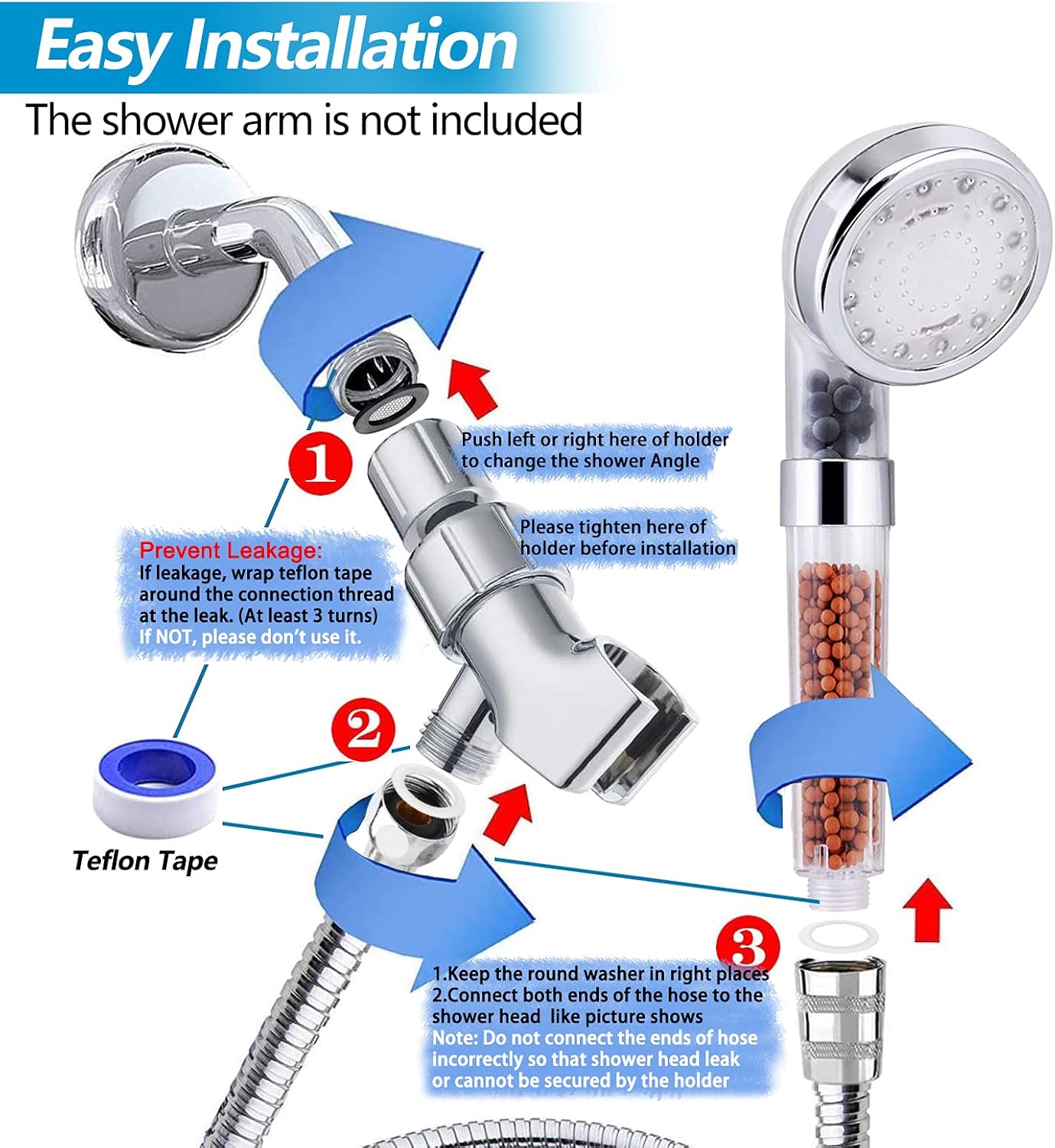 About this itemn?Double Filtration Design?- FASTRAS LED filtered shower head with handheld use Red Gray Filtration Stone Bead Balls to purify water quality and eliminate residual chlorine. It can also adjust the pH value of the water and keep it stay in a slightly alkaline, which can help restore healthy and smooth skin, soft and strong hair. Transparent design and high density filtration, more secure in use.n?Temperature Based Led Changing ?-The LED shower head with hose is powered by water and doesn’t require batteries. LED light color changes with water temperature ??85? green; 85-105? blue; 105-120 ? red ? ATTENTION?When Red Light Flashing, Mean High Heat Over 120 ?!n?High Pressure & Water Saving?-It is a high pressure shower head with handheld. Revolutionary micro-nozzle technology makes the LED shower head high pressure outlet hole smaller and denser, increasing both the flow speed and the water pressure. At the same time, water saving can reach 30%.n?Easily Install & Disassemble?-The package of the Filtered shower head with handheld has an installation guide. No tools are required for installation and disassembly by yourself. Really convenient for you to daily use and regular clean the LED shower head.n?Contain Everthing You Need?- LED shower head high pressure has a Hose, Holder, PTFE tape, 2 Hooks & Shower sponges which includes everything you want. Hose & holder are coated with an anticorrosive layer to prevent rust and shower head is ABS material and no batteries make it environmentally friendly and durable. If you have any questions on filtered shower head with hose, please let us know, we will help you solve the problem ASAP!n› See more product details